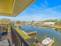 72-HOUR KICK-OUT CLAUSE IN EFFECT. Welcome to this 2-bed, 2-bath TOP-FLOOR END UNIT at Colonial House Condos with a BRAND NEW DOCK with BOAT SLIPS AVAILABLE! This updated home blends comfort and style, with an open floor plan that welcomes tons of natural light to create a warm and inviting atmosphere. High-impact windows and sliders provide enhanced storm protection while offering stunning panoramic views of the Banana River from both the living room and primary bedroom - perfect for enjoying breathtaking sunsets, sunrises, and rocket launches! The kitchen is a true standout, featuring a custom beach-inspired backsplash and ample storage space. Use the flex space off the foyer entry for a home office or extra guest room. A 1-car garage offers additional attic storage space. Residents also enjoy fantastic amenities, including a heated pool and clubhouse. Located minutes from shopping and the beautiful Cocoa Beach, this condo offers the best of both beachside and urban living!