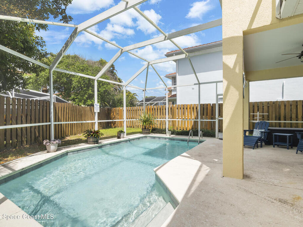 Owning a house on the beach just got real! This home features three spacious bedrooms, each equipped with its own en-suite bathroom and walk-in closets for ultimate convenience and privacy. Enjoy outdoor living at its finest with a beautiful HEATED swimming pool, perfect for lounging on warm sunny days or cool breezy nights. Alternatively, walk directly across the street to access your private beach, where you can soak up the sun or take leisurely strolls along the shore. Hurricane impact windows ensuring durability and energy efficiency which is great for homeowners insurance cost!Ready to move-in Today? Furniture is negotiable! ***1 Year Home Warranty Offered at closing*** Additional Incentives offered to buyers!This home is ideally located just minutes from parks in each direction, providing ample opportunities for outdoor activities, picnics, and family fun. Don't miss out on this coastal gem! Your dream home awaits!