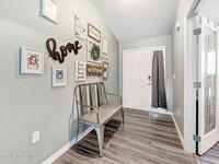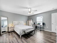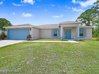 Charming concrete block home built in 2018 has an open split floor plan offering generous space throughout providing plenty of room for comfortable living. The primary bedroom is a retreat featuring large walk-in closet, a separate shower and soaking tub, and double sinks for added convenience. The massive kitchen island is perfect for cooking and gatherings. A dedicated laundry room and wide pantry add the convenience to organize items comfortably. Additional highlights include a security system, hurricane shutters, leased solar panel with maintenance included offering energy efficiency & peace of mind and a screened-in porch- ideal for enjoying the outdoor in comfort. Yard has plenty of space for pool. HOA free community.