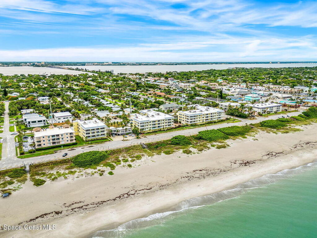 Penthouse living meets coastal cool in this 2006-built oceanfront 3-bedroom, 2-bath residence, perfectly positioned in the coveted SOFA district--just steps from Fifth Avenue's vibrant dining and shopping scene, including Scott's on Fifth, Skewers, Bizarro's, Starbucks, and Publix. Watch launches from the north and view the rockets as they cruise across the skyline in front of you beyond impact-rated windows and 9-foot ceilings, you'll find sleek LVP and ceramic tile flooring, granite kitchen counters, and a thoughtfully updated interior with new AC (2020), tankless gas water heater (2023), and a 2021 roof. Owners enjoy two prized garage parking spaces and a suite of amenities: a resurfaced (2021) pool and spa, gas grill and clubhouse for social gatherings, a fully outfitted fitness center with brand-new equipment, and climate-controlled storage for added ease. This top-floor retreat offers not just luxury, but a lifestyle--elevated, effortless, and steps from the sand.