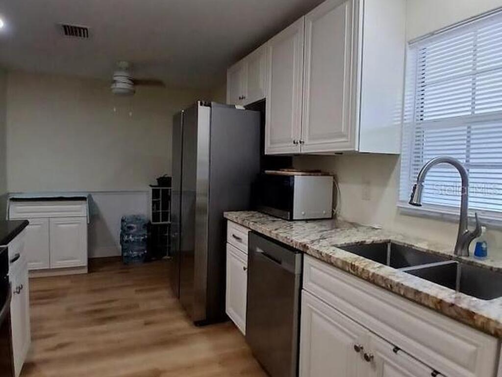 Beautiful Fully remodeled Home!!! 4 Spacious bedrooms 2 Full Baths. Split Bedroom layout. Stunning new kitchen with granite countertops, new high-end stainless-steel appliances, and new wood flooring for a modern exquisite look. Freshly painted with a neutral and classic color to brighten up the entire home. Spend your nights at the family gathering area or Floridian room by the wood burn fireplace, Enjoy delicious meals, long conversations, and good memories in the beautiful dining room. Do not miss the formal living area, great for separate gatherings and good conversations, apart from the family room but close enough to entertain. Fenced-in backyard. The roof was replaced in 2020, A/C unit was replaced in 2021. New electric panel, aluminum connectors, new light switches, and new outlets (including GFCI outlets where required) No HOA!