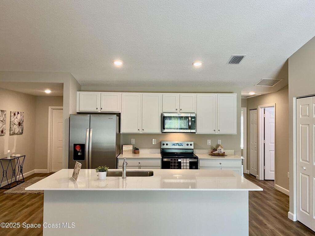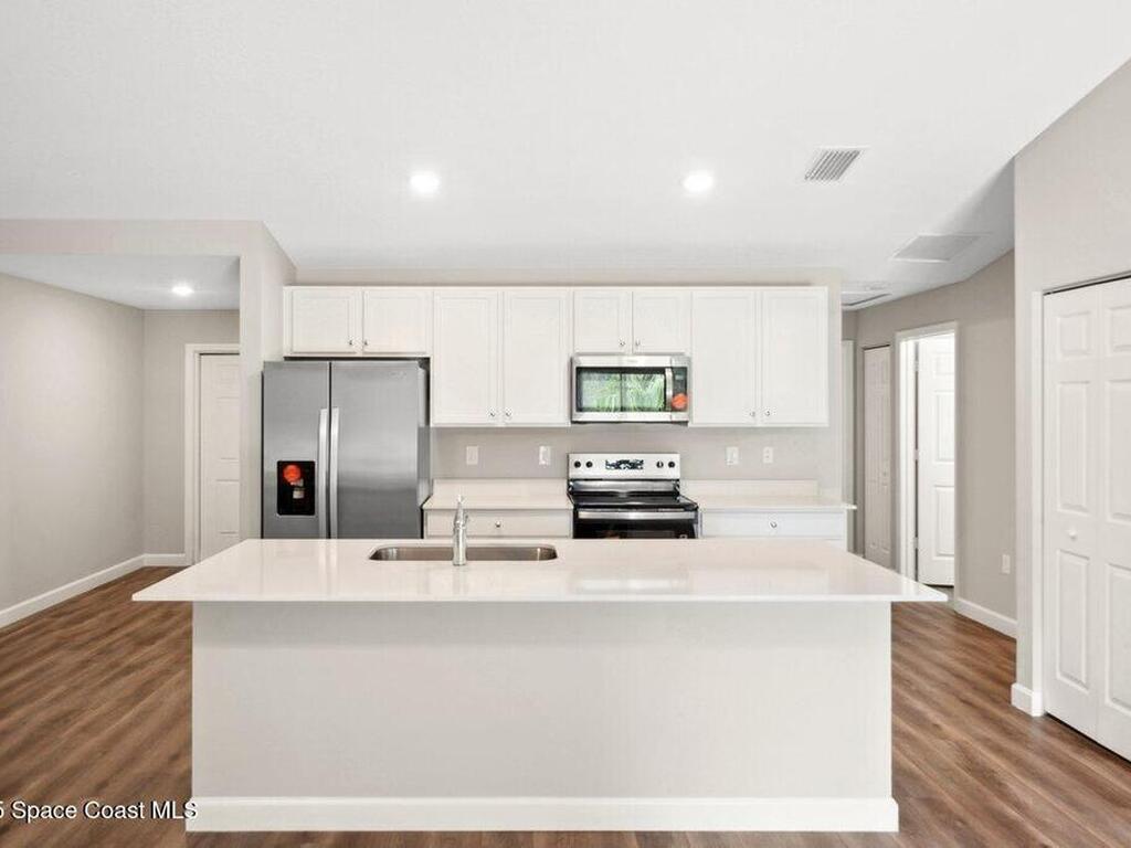 Ready Now! Value Priced, Beautiful, Brand-New Home with Builder Warranty! This home features 4 Bedrooms, 2 Full Baths with double sink vanities in each, a 2-Car Garage, and an Indoor Laundry Room. Featuring soaring ceilings in the living area, this spacious floor plan includes luxury vinyl plank flooring throughout the home. The kitchen offers 36'' all wood upper White Shaker cabinets, Quartz countertops, Whirlpool stainless steel appliances including refrigerator, stainless steel sink with a chrome Moen faucet, and a spacious pantry. The bathrooms are continuous in style and feature raised height wood vanities with full width mirrors, tiled shower/tub area, Moen water saving fixtures, and water saver commodes. Ceiling fans and window blinds are included throughout the home. This home is quality built and energy efficient.