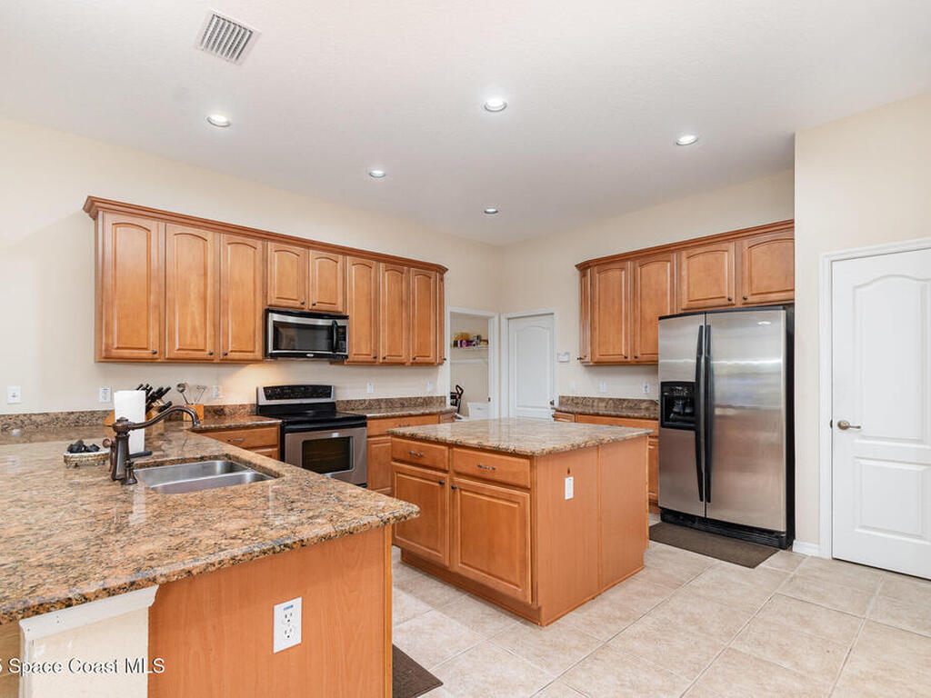 SELLER MOTIVATED . FRESHLY UPDATED home featuring 4 BEDROOMS PLUS office / nursery , 3 FULL baths , 3 CAR garage , pool and screen enclosure . ROOF 2023 / AC 2019 / water heater 2024 . BRAND NEW VINYL PLANK floors installed August .2025 . All NEW 2025 appliances including washer and dryer installed on 9.4.25 / all new interior paint coming . Large kitchen with 42 inch uppers / BBAR area/ free standing island .Granite countertops .Gated community OAKHURST is located close to shopping and school area. Fantastic floor plan that offers easy outdoor and indoor activity for family .