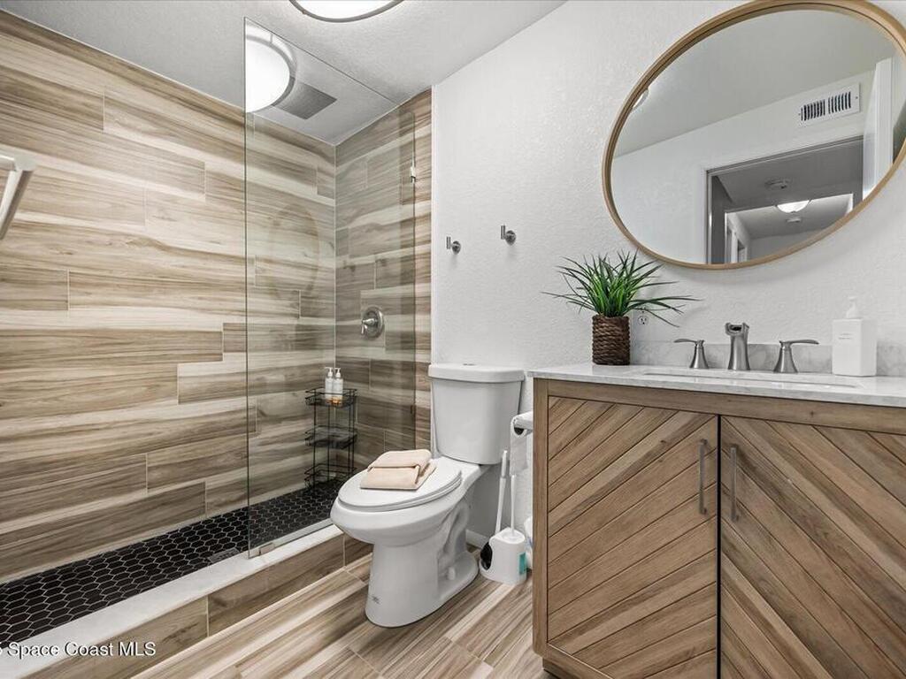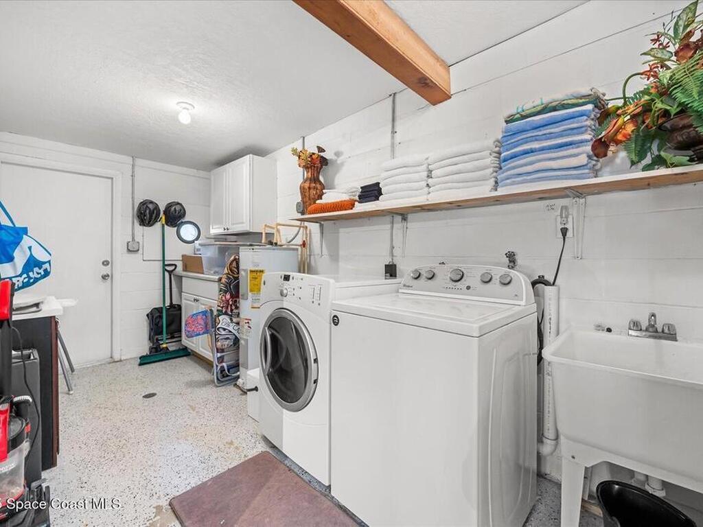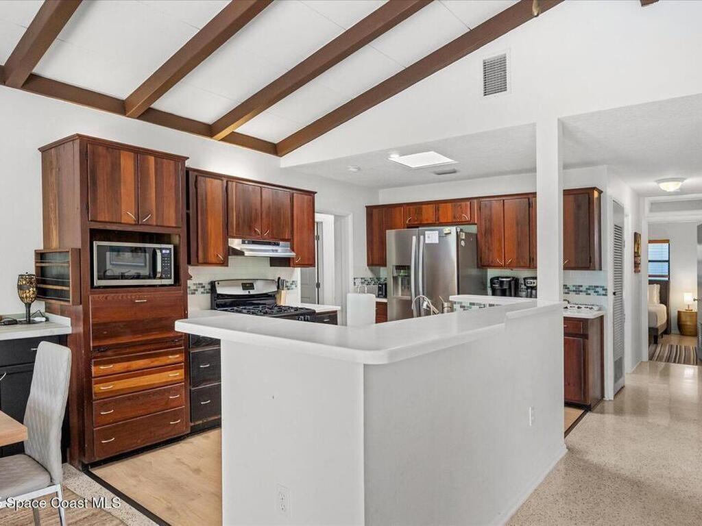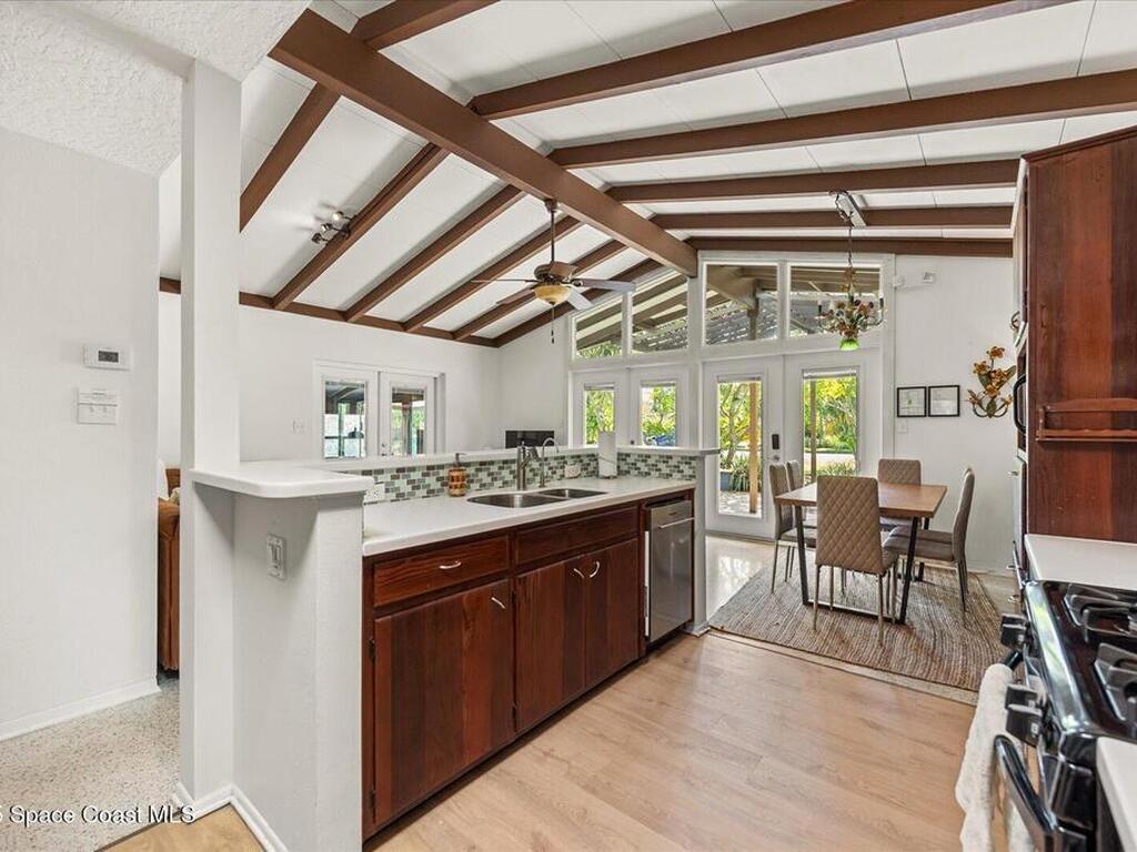 Private Oasis in the Heart of Cocoa Beach! Updated 4-bed, 3-bath pool home in the sought-after Cocoa Isles neighborhood offers the ultimate Florida lifestyle. Vaulted ceilings with exposed beams, clerestory windows, and an airy open layout create a bright, welcoming space. The kitchen features newer appliances and generous counter space, flowing into the living and dining areas--ideal for entertaining. The primary suite includes a resort-style bath with walk-in shower, while a converted garage adds 424 sq ft and a third full bath--perfect for multigenerational living or rental income. Enjoy a sunroom, mature landscaping, shaded patios, and a private plunge pool. With a 2-car carport, oversized driveway, and RV space, this home delivers comfort, flexibility, and charm. Whether you're dreaming of beachside living or searching for a savvy Airbnb or long-term rental investment, this versatile home is ready to impress--just minutes from the sand, surf, and all that Cocoa Beach has to offer.