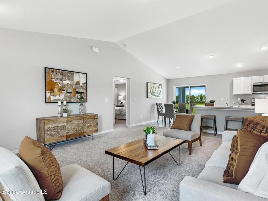 LIMITED TIME: Eligible for 4.99% FHA/VA financing! Welcome to the Santa Maria -- where thoughtful design meets effortless living. This open-concept floor plan seamlessly connects the Great Room, kitchen, & dining area under a vaulted ceiling, creating a spacious & inviting main living space. Sliding glass doors lead to a breezy covered lanai, perfect for indoor-outdoor entertaining. The kitchen impresses with a breakfast bar, full stainless steel kitchen appliance package, & 36'' shaker-style soft-close wall cabinets. The primary suite features a generous walk-in closet & bathroom with dual-sink vanity, tiled shower, & a private water closet. Two additional bedrooms and a shared full bath are located on the other side of the home, offering comfort & flexibility for guests or family. Additional highlights include plank tile flooring throughout the main living areas, Quartz countertops in kitchen & baths, & impact-resistant windows & doors. Pics, renderings are for display purposes.