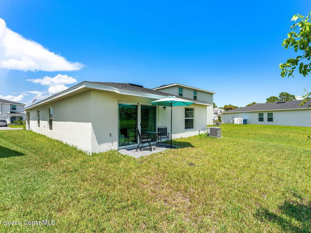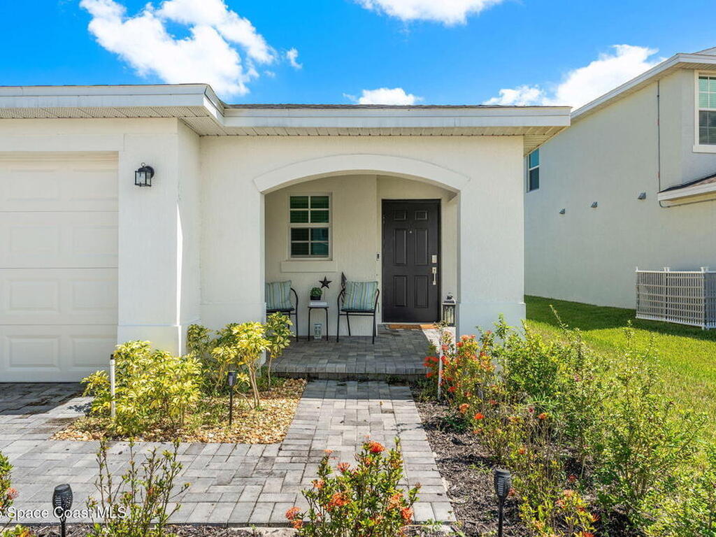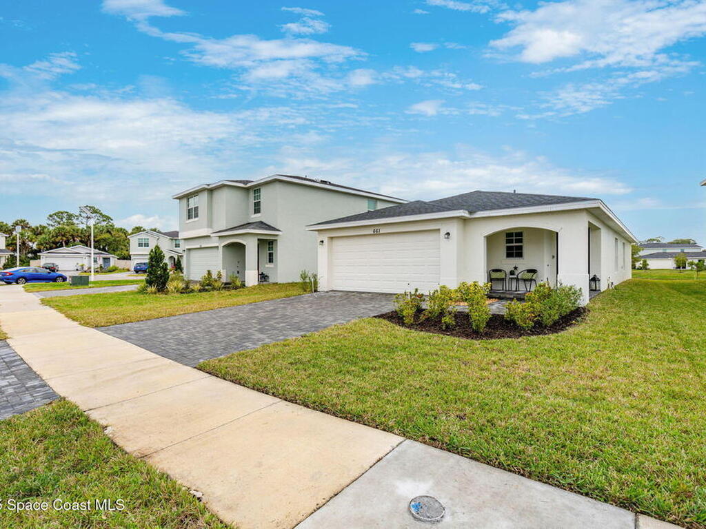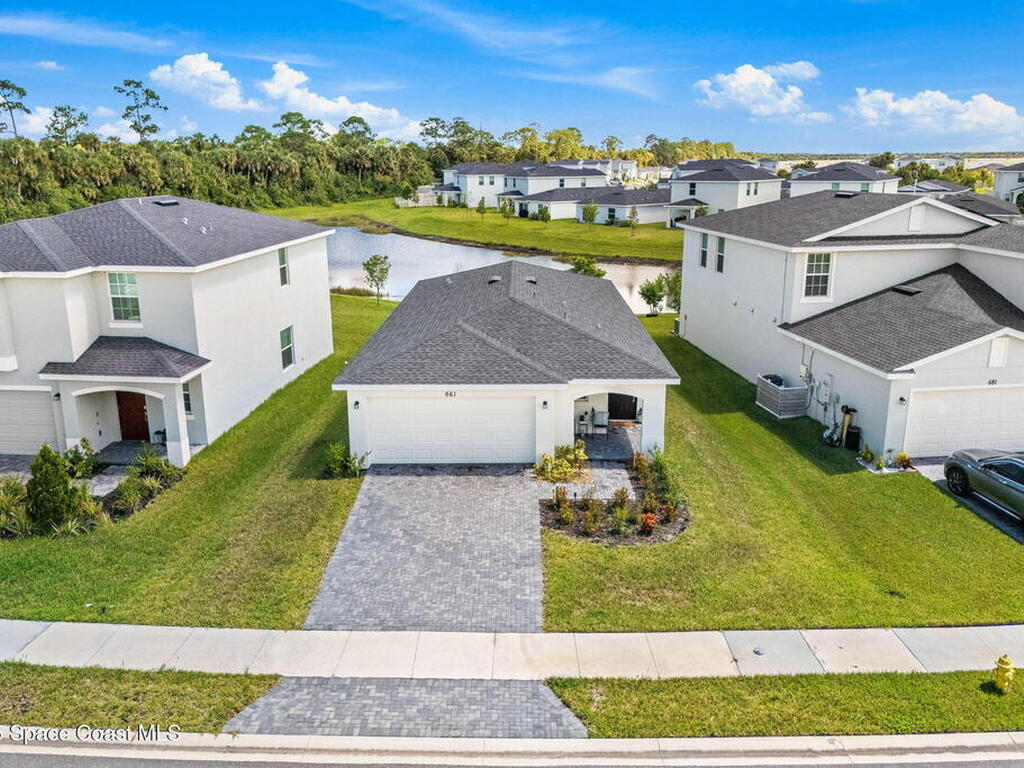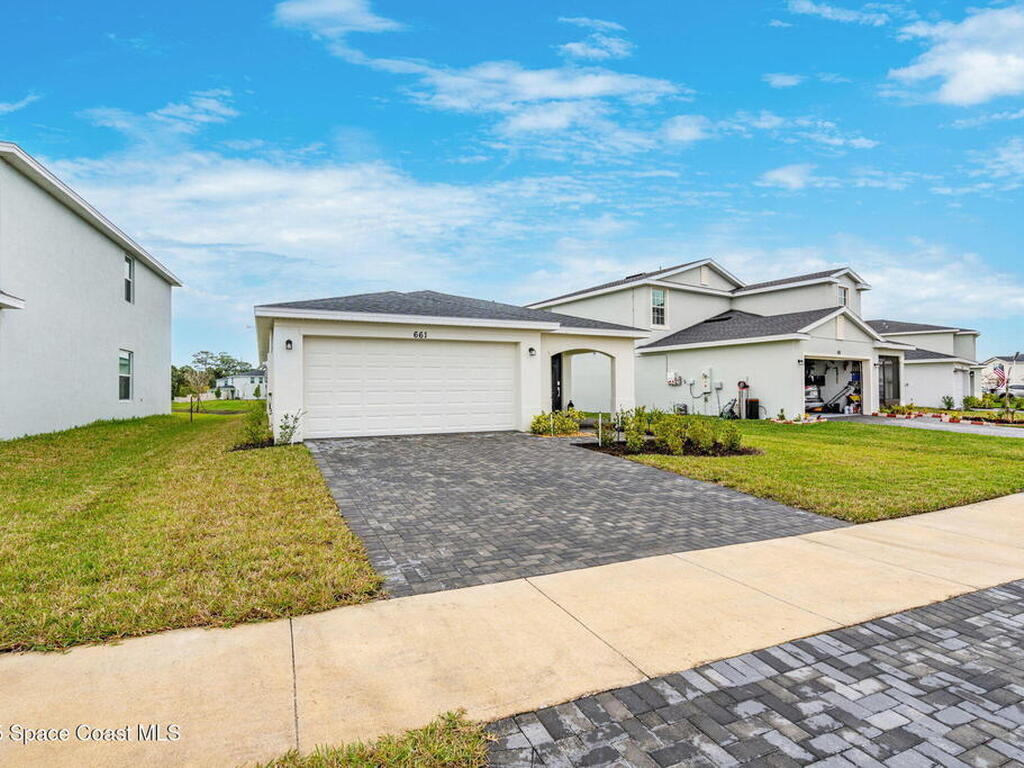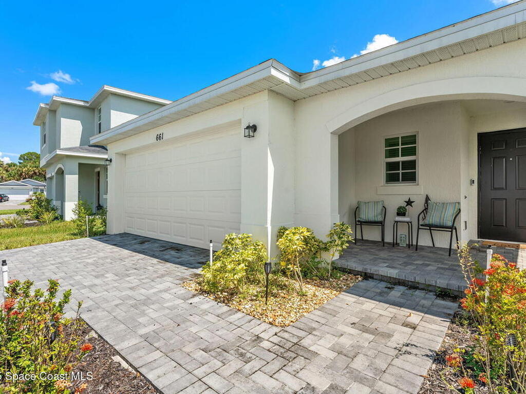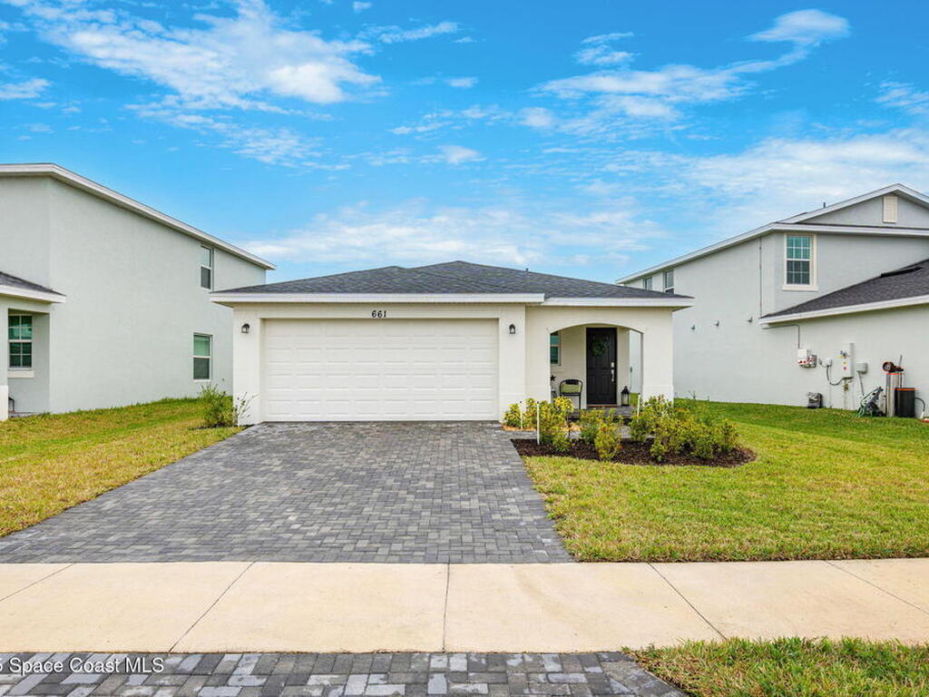 Welcome to 661 Papillon Street!Located in the desirable gated community of Tillman Lakes in Palm Bay, this stunning residence is the perfect blend of modern design, comfort, and functionality. Built in November 2023, this like-new single-family home offers 1, 451 sq. ft. of thoughtfully designed living space with a modern split floor plan. Inside, you'll find 3 bedrooms, 2 bathrooms, and an inviting layout that's ideal for first-time buyers, growing families, or anyone seeking a peaceful retreat. The kitchen is the showpiece featuring quartz countertops, sleek stainless steel appliances, and an open design that flows seamlessly into the living and dining areas, making it perfect for everyday living and entertaining.Step outside to your private backyard oasis, where tranquil lake views set the scene for morning coffee, evening sunsets, or weekend barbecues.