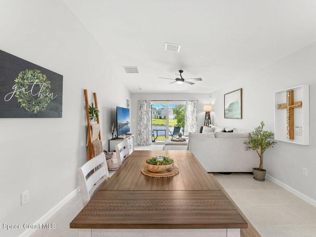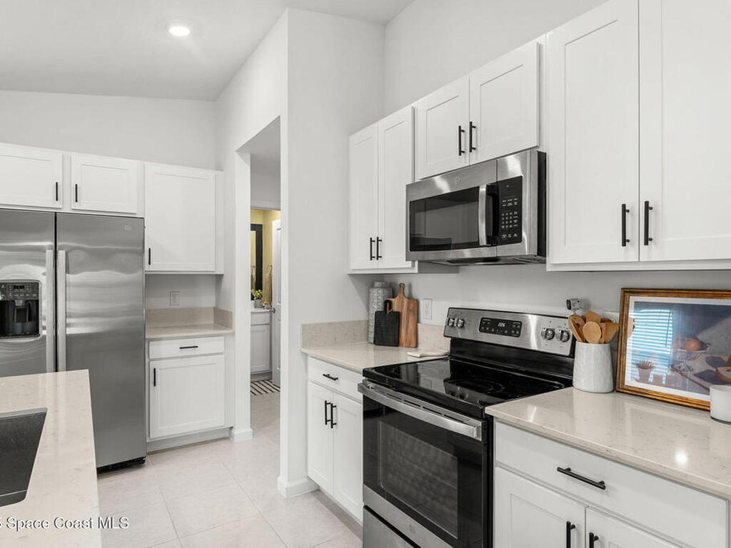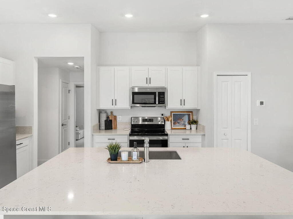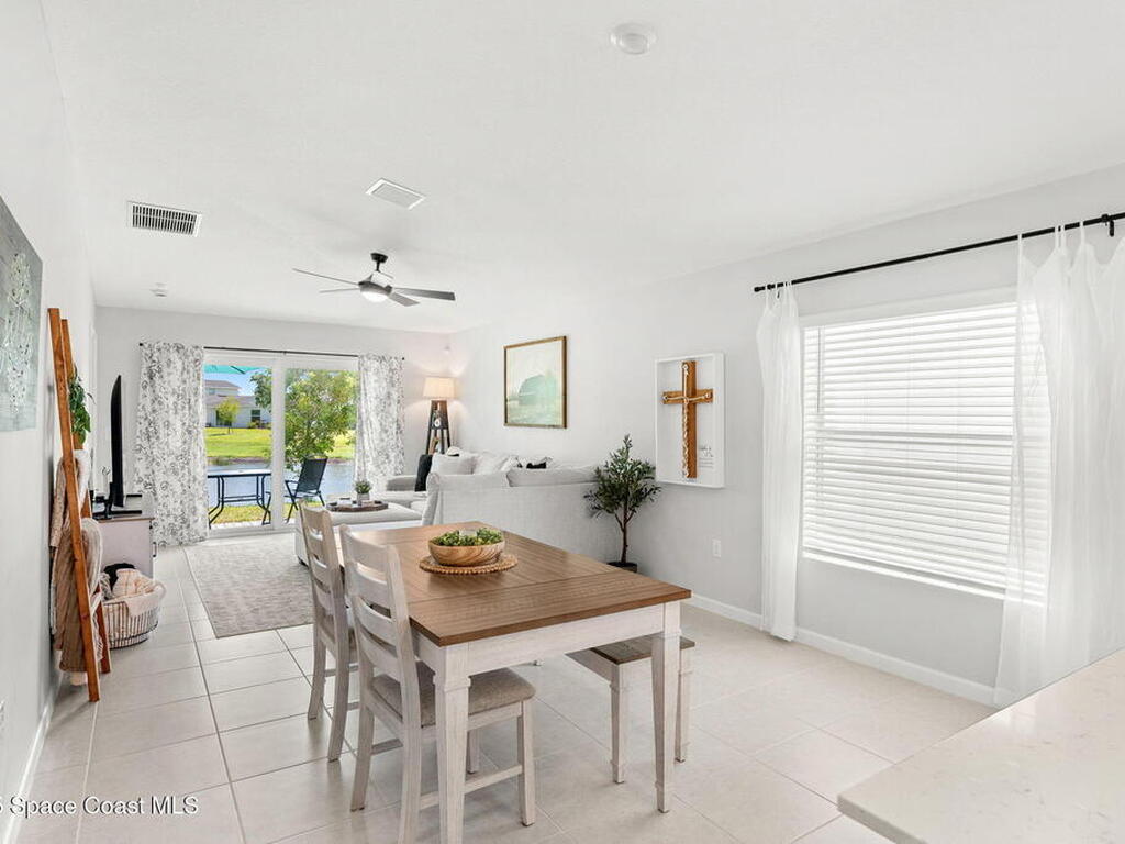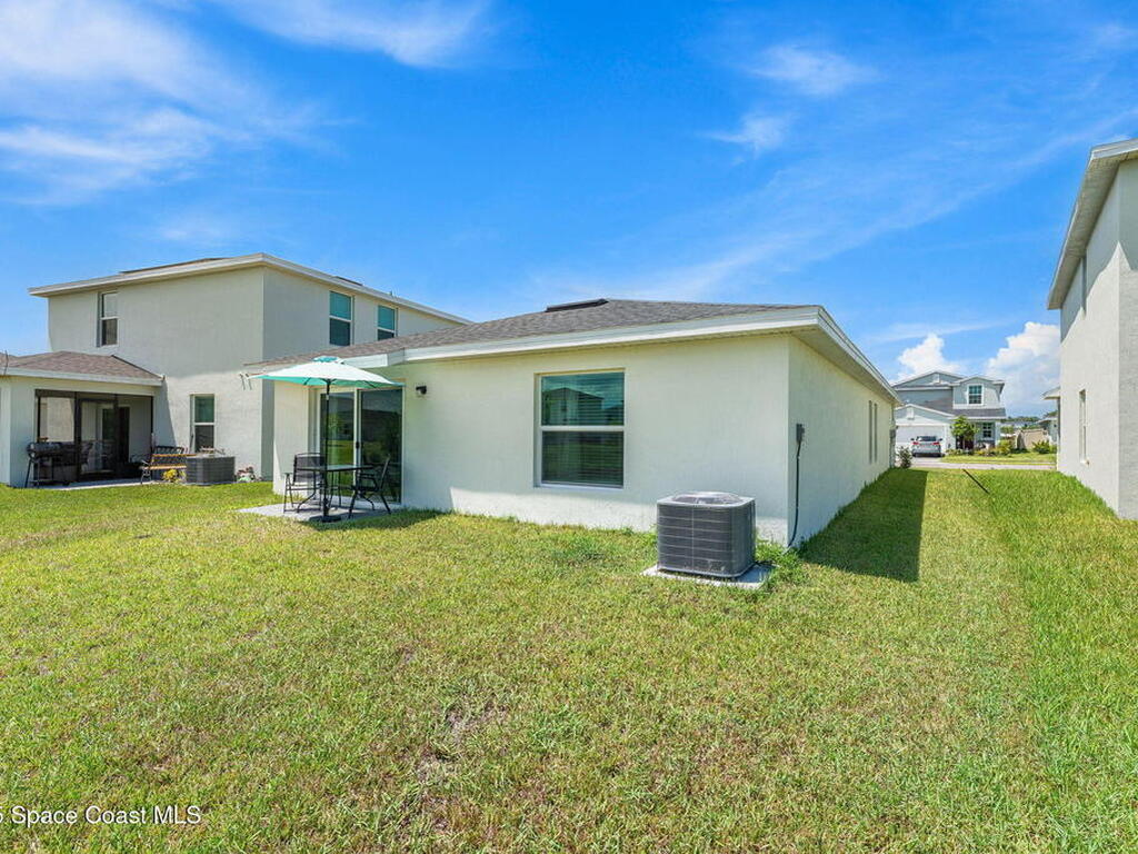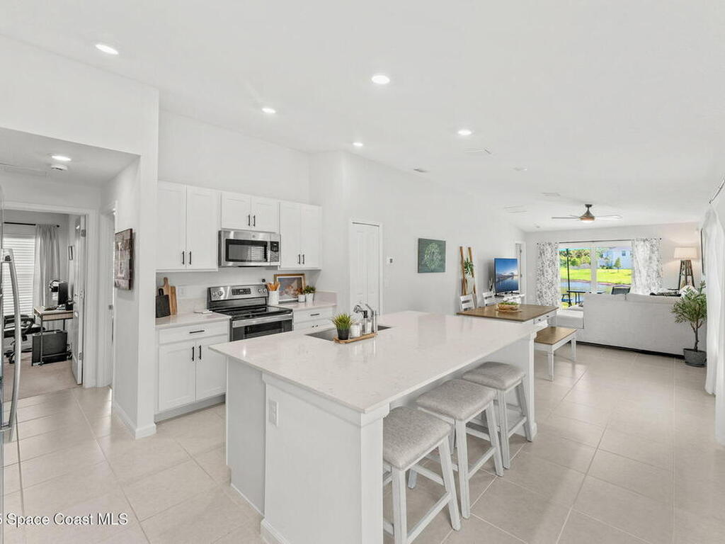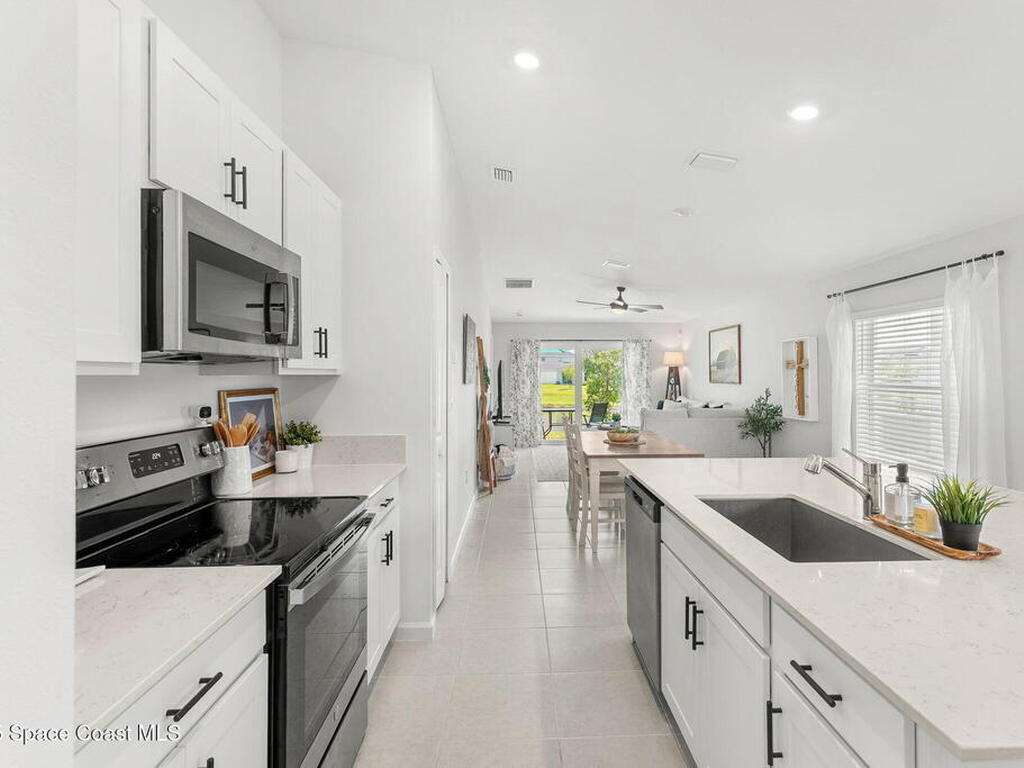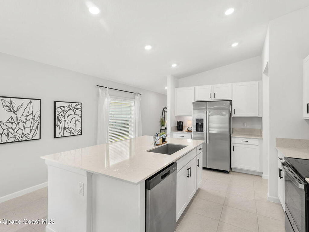 Welcome to 661 Papillon Street!Located in the desirable gated community of Tillman Lakes in Palm Bay, this stunning residence is the perfect blend of modern design, comfort, and functionality. Built in November 2023, this like-new single-family home offers 1, 451 sq. ft. of thoughtfully designed living space with a modern split floor plan. Inside, you'll find 3 bedrooms, 2 bathrooms, and an inviting layout that's ideal for first-time buyers, growing families, or anyone seeking a peaceful retreat. The kitchen is the showpiece featuring quartz countertops, sleek stainless steel appliances, and an open design that flows seamlessly into the living and dining areas, making it perfect for everyday living and entertaining.Step outside to your private backyard oasis, where tranquil lake views set the scene for morning coffee, evening sunsets, or weekend barbecues.