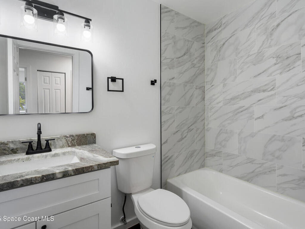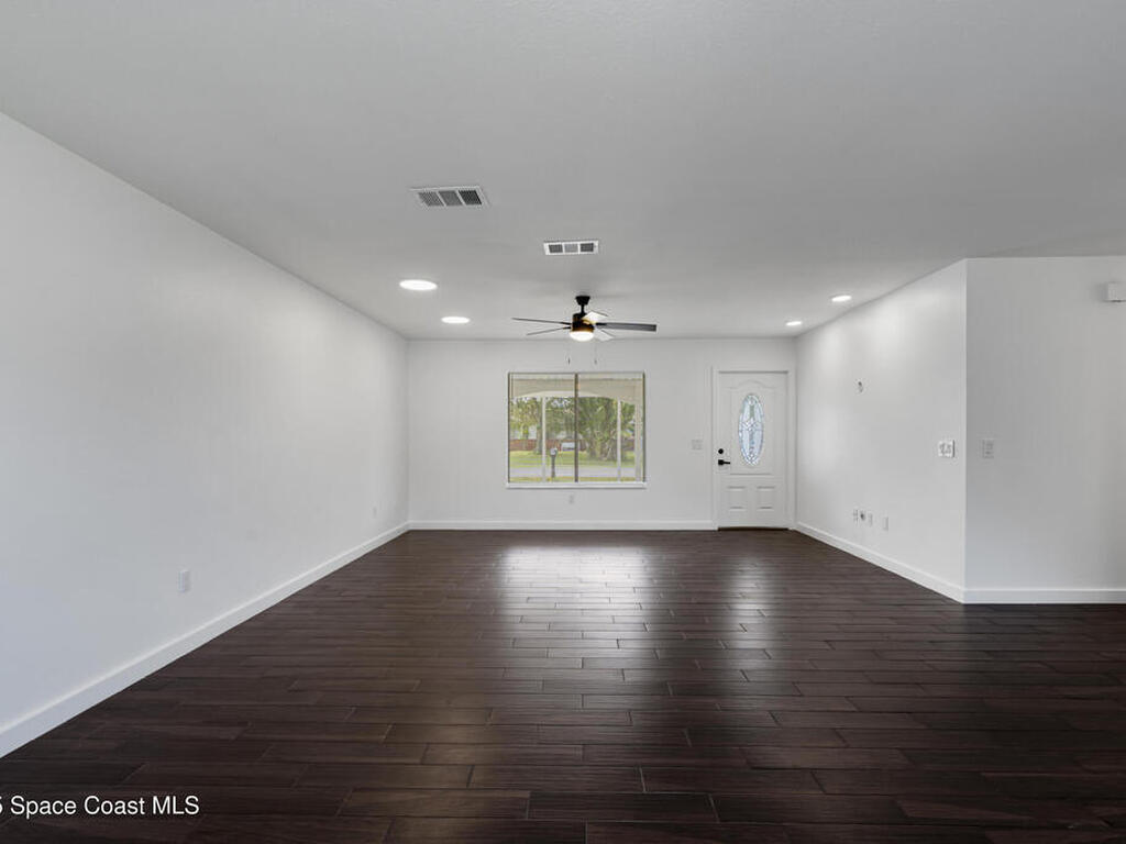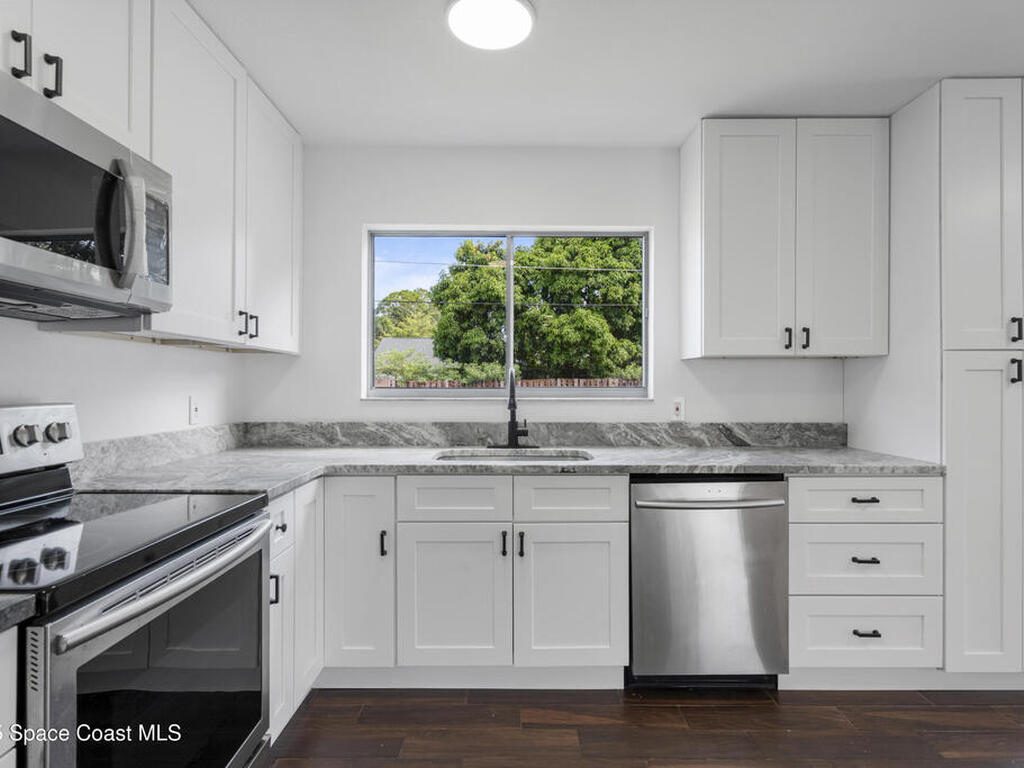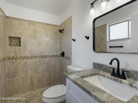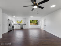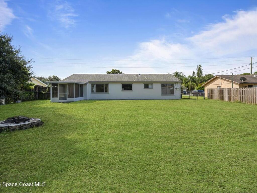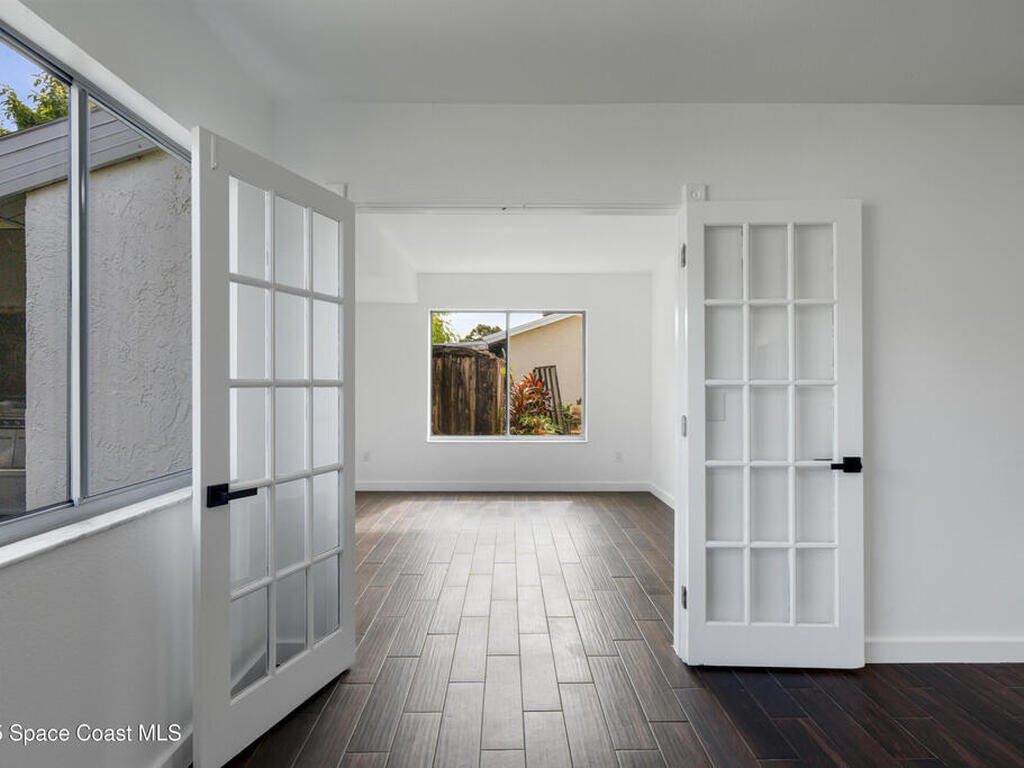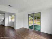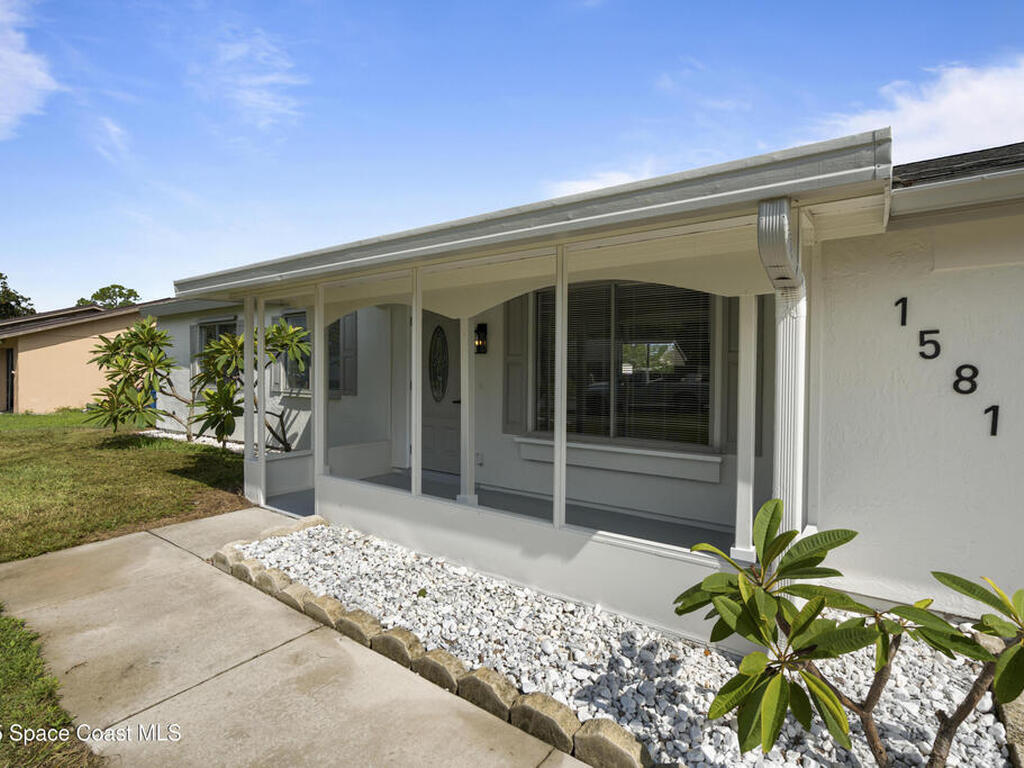 Beautifully remodeled 3-bedroom, 2-bath home with an extra room, offering 1, 320 sq. ft. of comfortable living space. Major updates include a roof replaced in December 2017, HVAC in 2022, and a water heater in 2022, providing peace of mind for years to come.The spacious open living area flows seamlessly into the extra room through French doors - great for a home office or entertainment area. The modern kitchen features new cabinetry, premium natural stone countertop, and stainless steel appliances. Both bathrooms are stylishly updated with matching premium stone vanities.Enjoy Florida living with front and back porches, a fully fenced backyard, and a storage shed for convenience. Hurricane shutters are also included.This home is ideally located just minutes from I-95, Walmart, Home Depot, shopping, dining, and local amenities, and only 20 minutes from the beach! full of updates, this home is a must-see!