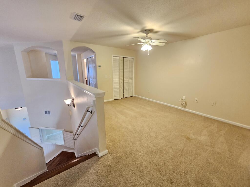 Step into your dream home nestled in Melbourne's heart, just off Wickham. This captivating townhome epitomizes convenience. Spanning two stories, it includes 4 cozy bedrooms, 2.5 bathrooms, a versatile loft, and a dedicated working/office space. The kitchen shines with top-of-the-line stainless steel appliances, while the laundry area features a large capacity washer and dryer.Unwind in the serene primary bedroom downstairs, boasting a generous walk-in closet and a separate tub and shower. Upstairs, the loft overlooks the living area, with three additional bedrooms ensuring privacy and comfort. A sizable built-in desk caters perfectly to remote workers or students.Savor lake views from the master bedroom and one upstairs bedroom, offering a tranquil sanctuary within your home. Step outside to the screened patio or fenced backyard oasis, perfect for basking in the sun or creating cherished memories w/ loved ones. A convenient 2 car garage provides ample storage or parking space.