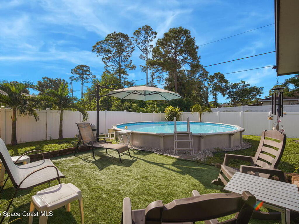 Back On The Market - Due To Financing. Charming Pool Home with City Water and Nearly 1, 400 Sq Ft of Living Space! Bring your pets, the backyard is fully fenced with new vinyl (2021). Roof only 6 years old + Brand-New Hot Water Heater (Oct 2025). Tile flooring throughout home, (even in the closets), for easy upkeep. The kitchen was refreshed with updated counters and kitchen appliances (2023). The living room features an upgraded impact front door and an impact window. Relax on the spacious screened porch with an insulated roof, overlooking your private backyard oasis. Back yard complete with a sparkling pool (added in 2021), large umbrella, and a storage shed. Pool is covered under warranty for an additional 4 years. Conveniently located just two blocks off Babcock for easy access to I-95, shopping, and dining.