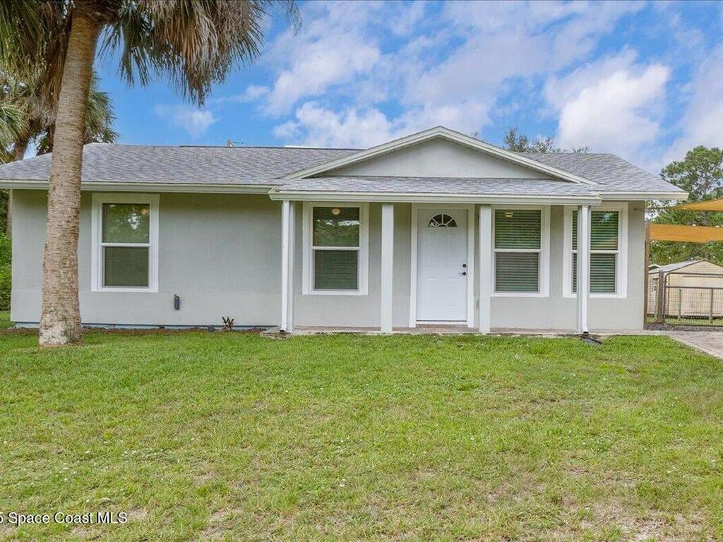 Great opportunity for first-time buyers! This well-kept 3b/1b home in Palm Bay offers comfortable living in a quiet neighborhood. The front living room flows into an eat-in kitchen w/laundry area, creating a practical layout for everyday life. All three bedrooms & the full bath are set down the hall ensuring privacy from the hubbub of everyday life. Tile floors & ceiling fans throughout add comfort & ease, and a backyard shed provides extra storage. Easy to maintain & move-in ready, this home could also work well as a rental or seasonal retreat. Impact windows and new roof 2023. Don't miss your chance - schedule your showing today!
