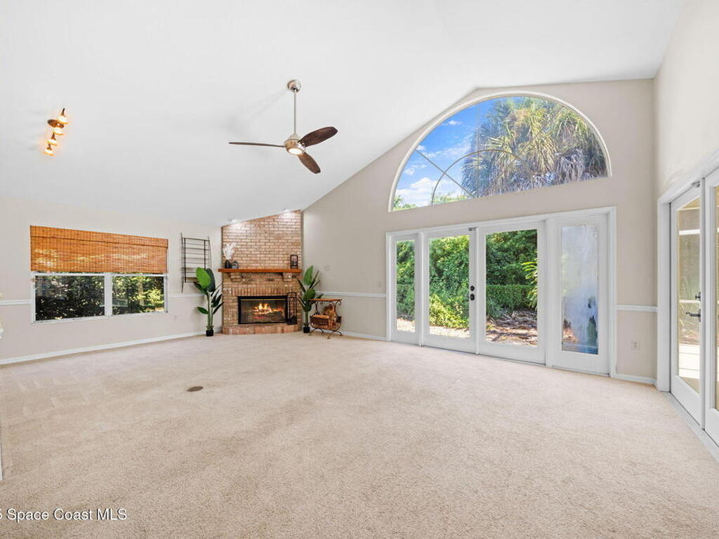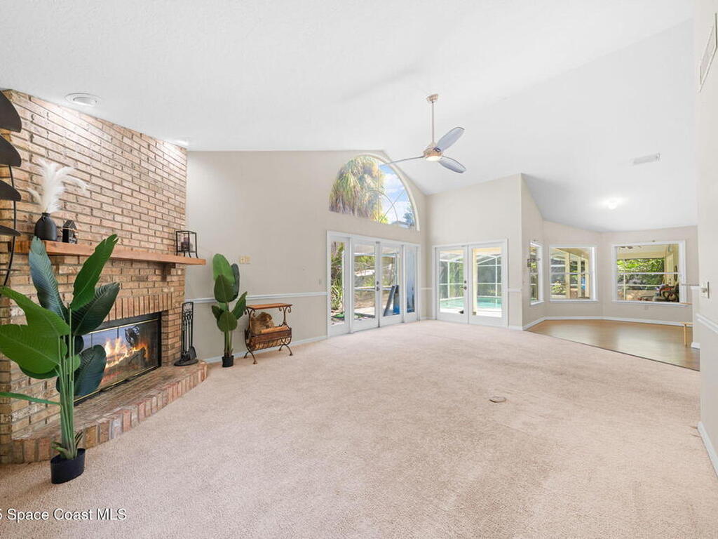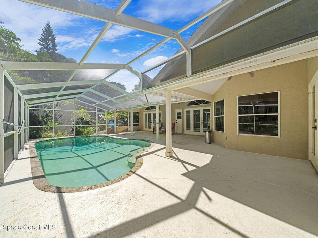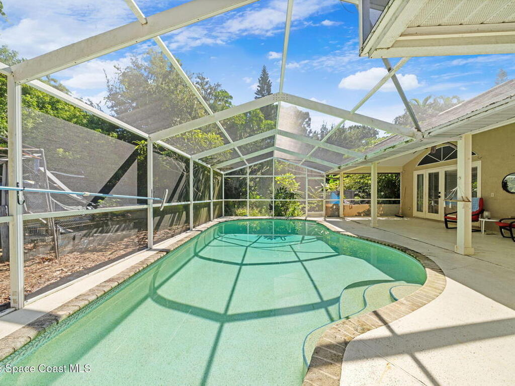 Welcome to this tropical Merritt Island home nestled in the heart of Georgiana Woods. This home features separate formal living and dining rooms, family room with fireplace, eat in kitchen with breakfast bar overlooking the screened pool and back yard on a spacious lot! Master bath has jetted tub/separate shower, double sinks and HIS and HERS walk in closets! Beautiful kitchen with granite counters, Oversized 3 car garage with a built in office with electric and A/C. All of this in a rural, peaceful setting at the end of a cul-de-sac. Beautiful neighborhood with NO HOA! Solar Panels installed 2021, roof installed 2020, A/C 2011, new tankless hot water heater, and new pool pump. With some TLC, this home will be a dream!