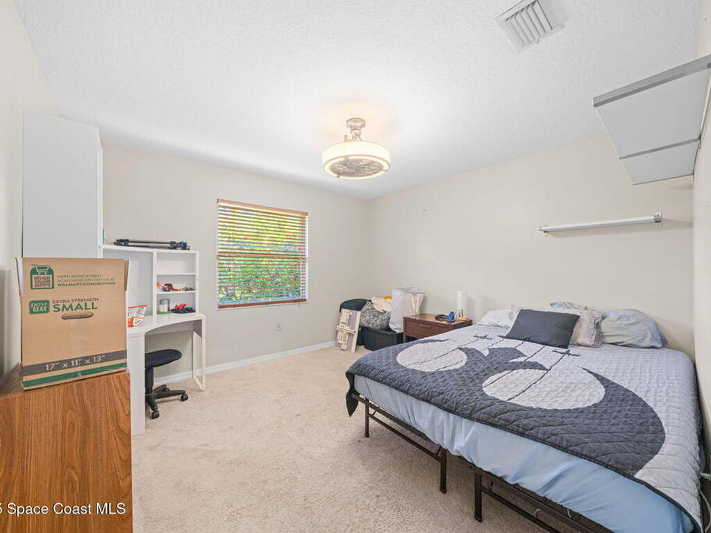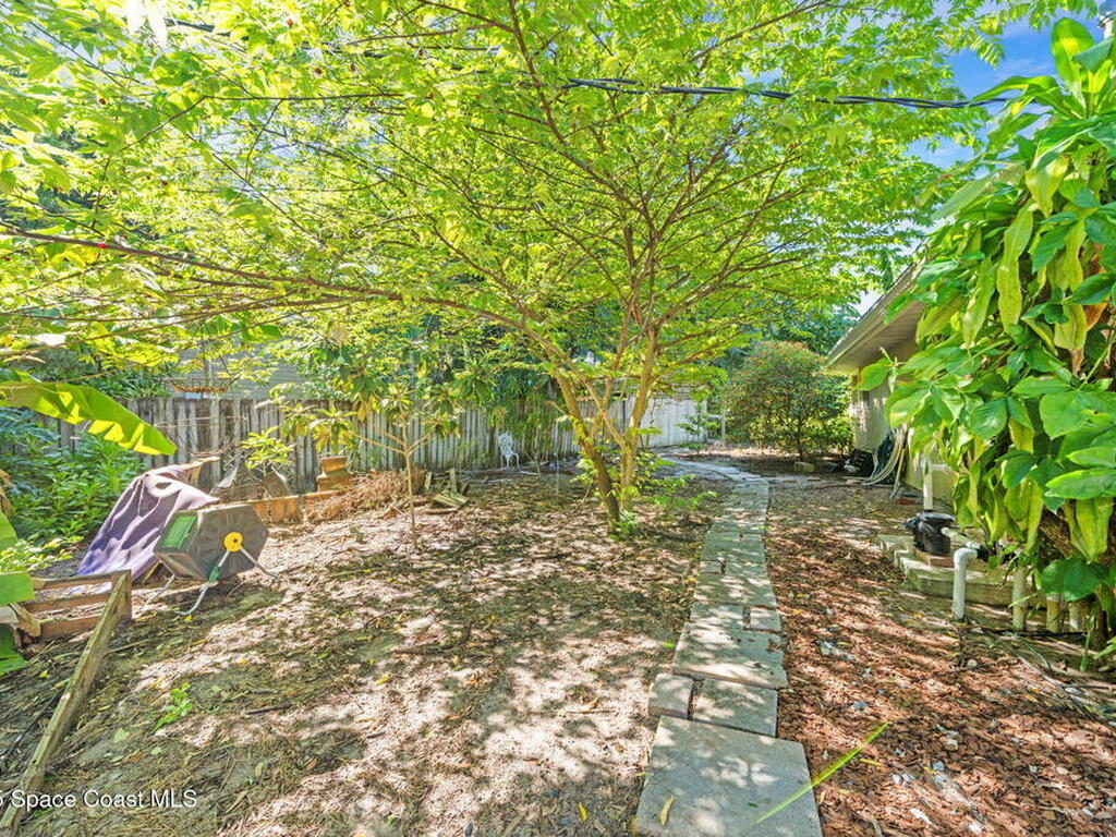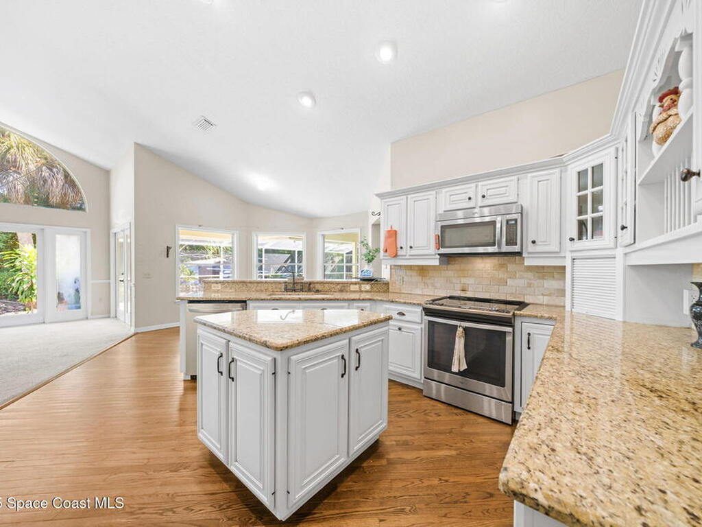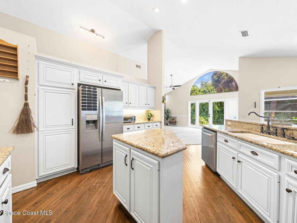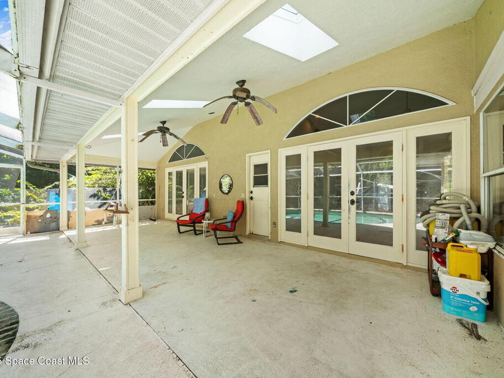 Welcome to this tropical Merritt Island home nestled in the heart of Georgiana Woods. This home features separate formal living and dining rooms, family room with fireplace, eat in kitchen with breakfast bar overlooking the screened pool and back yard on a spacious lot! Master bath has jetted tub/separate shower, double sinks and HIS and HERS walk in closets! Beautiful kitchen with granite counters, Oversized 3 car garage with a built in office with electric and A/C. All of this in a rural, peaceful setting at the end of a cul-de-sac. Beautiful neighborhood with NO HOA! Solar Panels installed 2021, roof installed 2020, A/C 2011, new tankless hot water heater, and new pool pump. With some TLC, this home will be a dream!