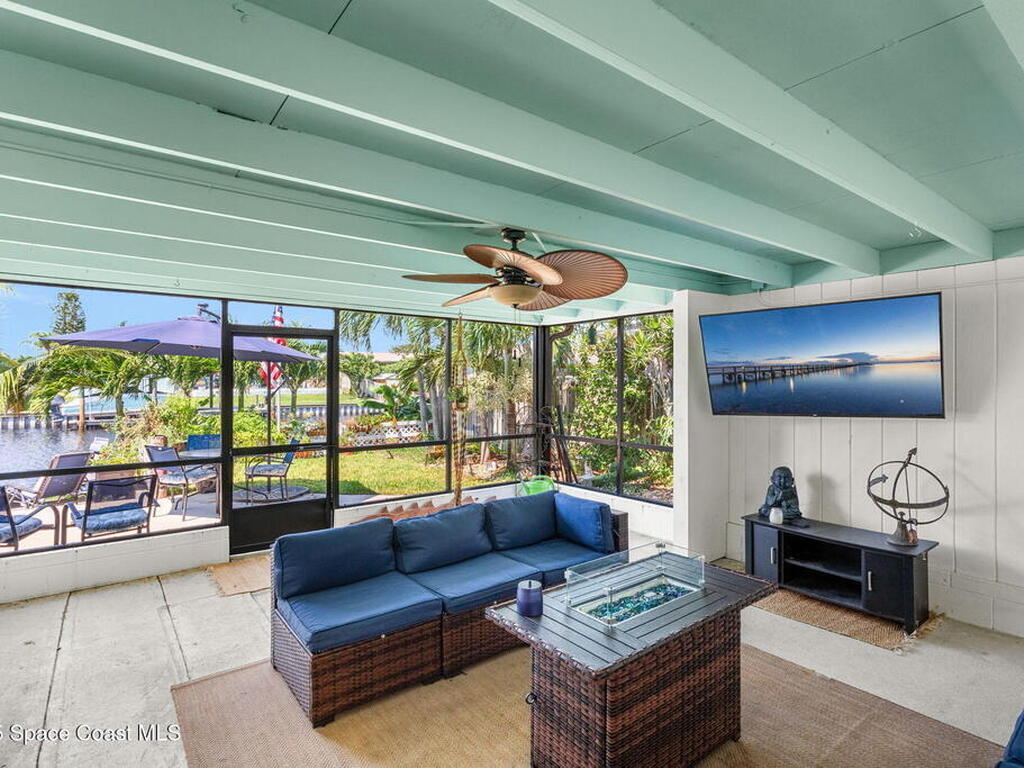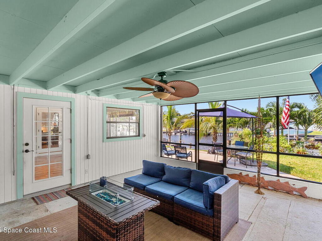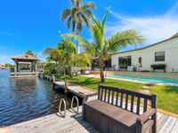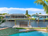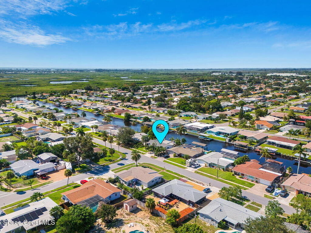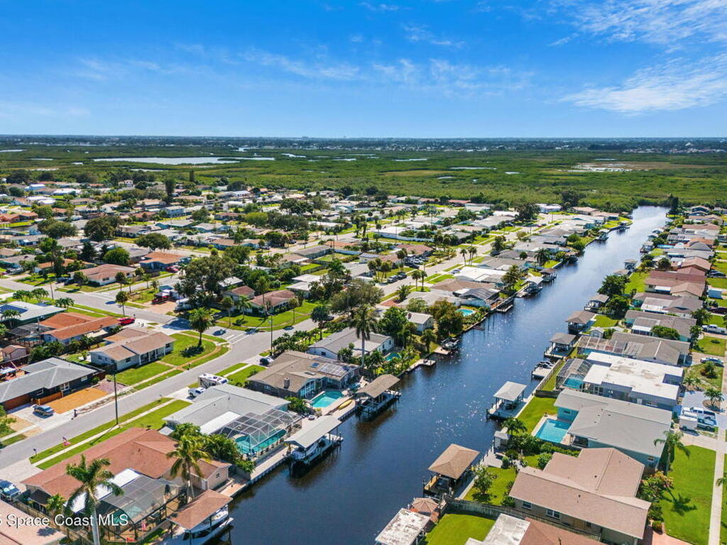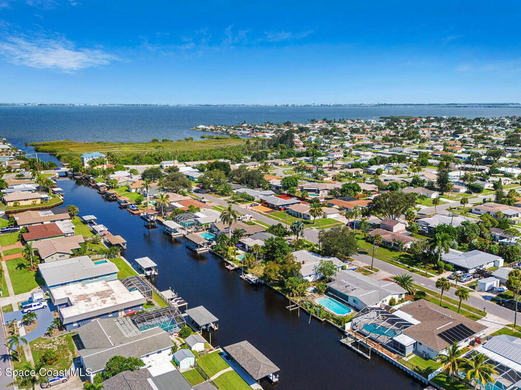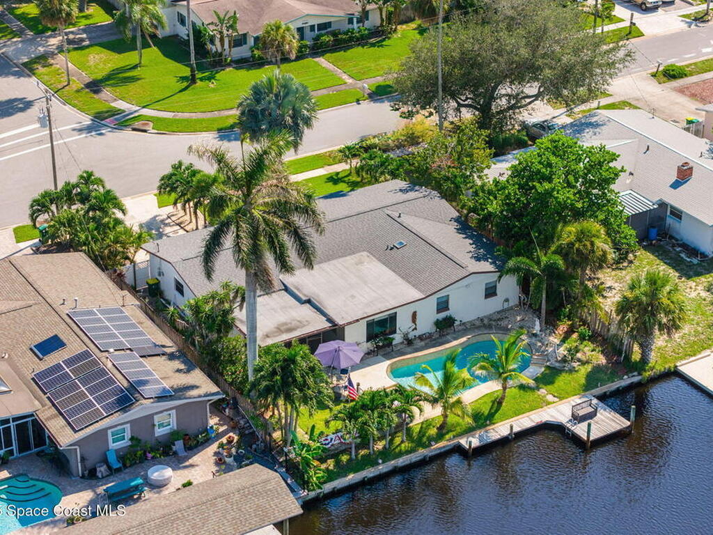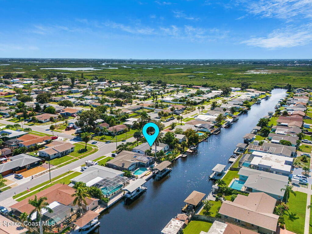 Live the waterfront lifestyle in Holiday Cove. This single story 3 bedroom, 2 bathroom canal front pool home offers easy access to the Banana River and Ulumay Wildlife Sanctuary via a deep water canal. The oversized covered lanai and tropical pool area create the perfect setting to relax or entertain while enjoying stunning water views. Inside, you'll find nearly 1, 900 square feet of living space with original terrazzo floors, a modernized kitchen with gas range, tile backsplash, and stainless steel appliances. Other updates include a new HVAC system and sleeved plumbing. The home is move in ready with room for cosmetic updates and personal touches. No HOA and located just around the corner from Kelly Park boat ramp and only 10 minutes to Cape Canaveral Beach and Port Canaveral.