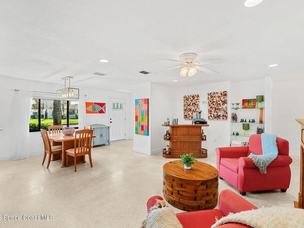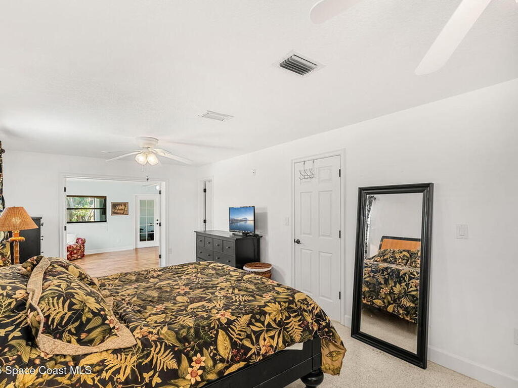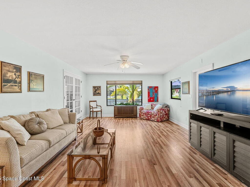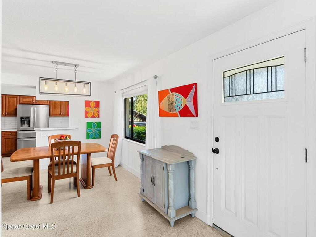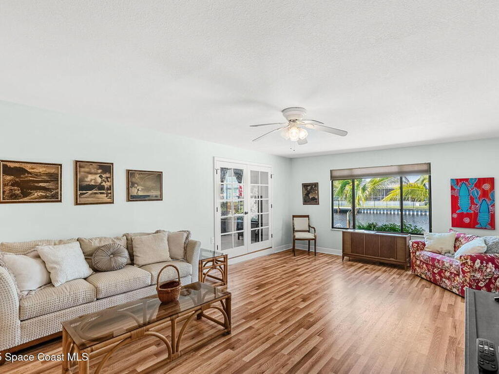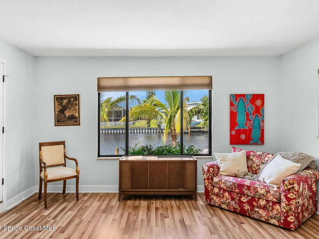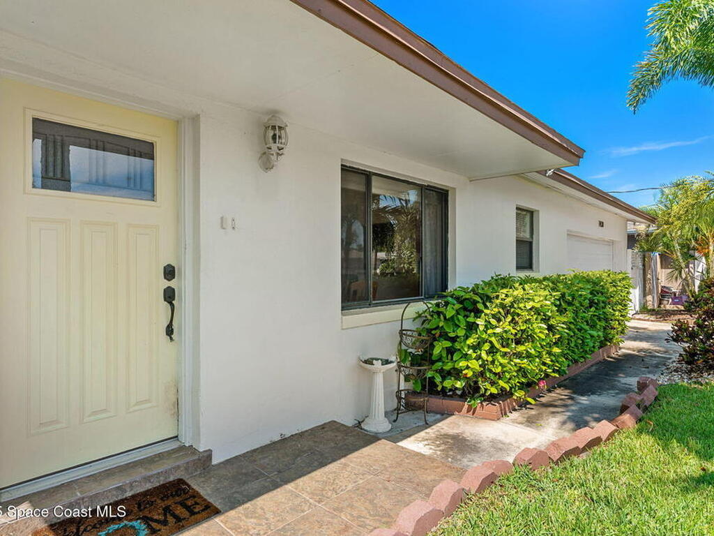 Live the waterfront lifestyle in Holiday Cove. This single story 3 bedroom, 2 bathroom canal front pool home offers easy access to the Banana River and Ulumay Wildlife Sanctuary via a deep water canal. The oversized covered lanai and tropical pool area create the perfect setting to relax or entertain while enjoying stunning water views. Inside, you'll find nearly 1, 900 square feet of living space with original terrazzo floors, a modernized kitchen with gas range, tile backsplash, and stainless steel appliances. Other updates include a new HVAC system and sleeved plumbing. The home is move in ready with room for cosmetic updates and personal touches. No HOA and located just around the corner from Kelly Park boat ramp and only 10 minutes to Cape Canaveral Beach and Port Canaveral.