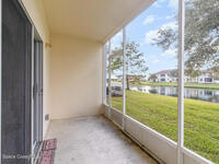 Pond Views & Easy Living! Fabulous 1-story, ground-floor condo with peaceful pond views from your screened porch. Imagine yourself relaxing in the evenings on the back porch, which has a hint of privacy from an oak tree, but still being close to all the amenities of Melbourne and its regional airport. This 3BR/2BA + dining/flex room, has soaring ceilings, and a huge primary suite with walk-in closet and double vanities in the bath. Updates you'll love include: roof 2022, HVAC 2018, and many brand new kitchen appliances. The 1-car garage adds just the right convenience. The HOA covers lawn care, and the sparkling community pool is ready when you are. This condo is in a prime location - it is close to I95, shopping, dining, and more!