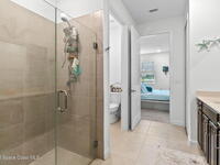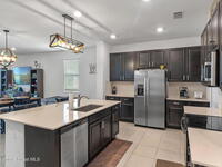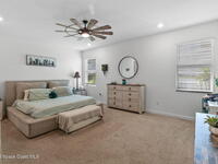 This waterfront home offers 5 bedrooms plus a den in an open, airy layout designed for lounging and entertaining. The first-floor primary suite overlooks the lake and flows to a spa-like ensuite bath and a huge walk-in closet, while a second upstairs family room provides extra living space. Enjoy breathtaking sunsets from your backyard and nearby lake views that set a magical mood. The kitchen features quartz countertops, marble window sills, and 42'' cabinets, with impact windows delivering quiet interiors, energy efficiency, and easy storm prep. Four additional bedrooms provide ample space for guests, family, or work-from-home setups. Outside and in the community, residents can stroll to the pool, take part in an active schedule of neighborhood events and movie nights, and savor the tranquil waterfront setting. Location is ultra-convenient--easy access to Melbourne via St. John's Heritage Pkwy, with a variety of shopping and dining options just 10-15 minutes away.