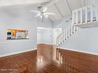 This rare end unit offers exceptional privacy and a versatile layout, complete with a cozy carpeted loft that can serve as a home office, guest lounge, or creative lifestyle space. Rich hardwood floors, a covered lanai and soaring vaulted ceilings create an open, inviting atmosphere, while the convenience of an in-unit washer & dryer adds everyday ease. Just minutes from Melbourne Square Mall and quick access to I-95, the location balances peaceful living with effortless connectivity. Within Greenwood's gated community, residents enjoy resort-style amenities including a sparkling pool, hot tub, sauna, tennis & racquetball courts, shuffleboard, fitness center, and a vibrant clubhouse. Association fees cover essentials like cable, internet, lawn care, pest control, insurance, and even roof replacement, ensuring worry-free ownership.