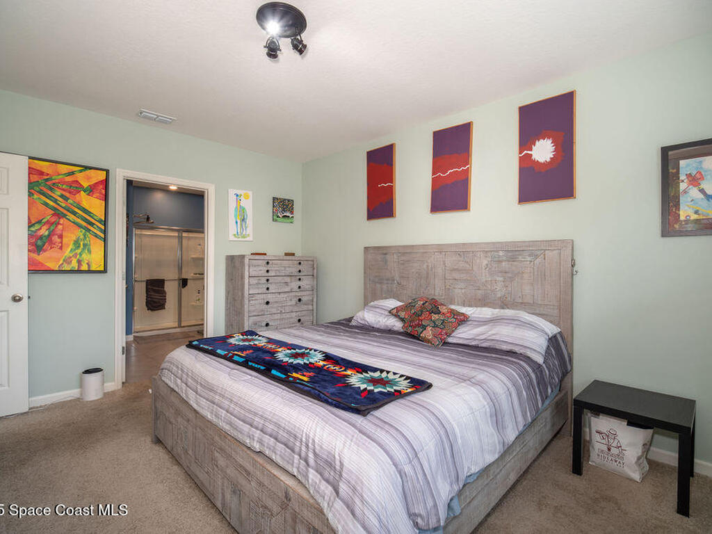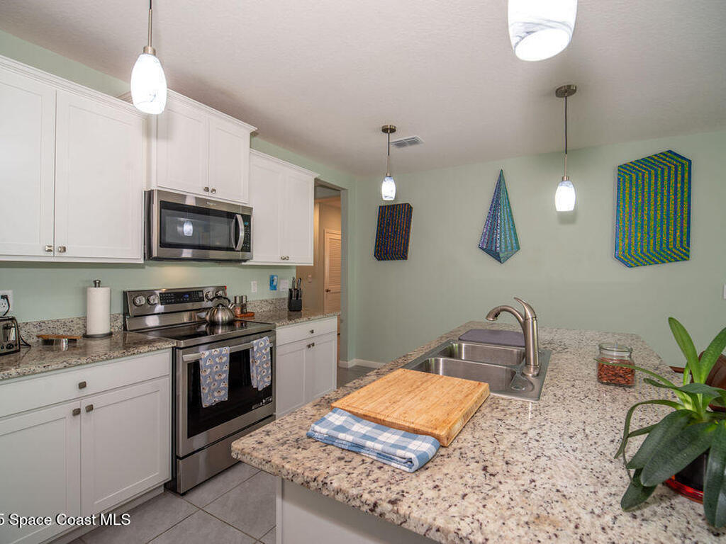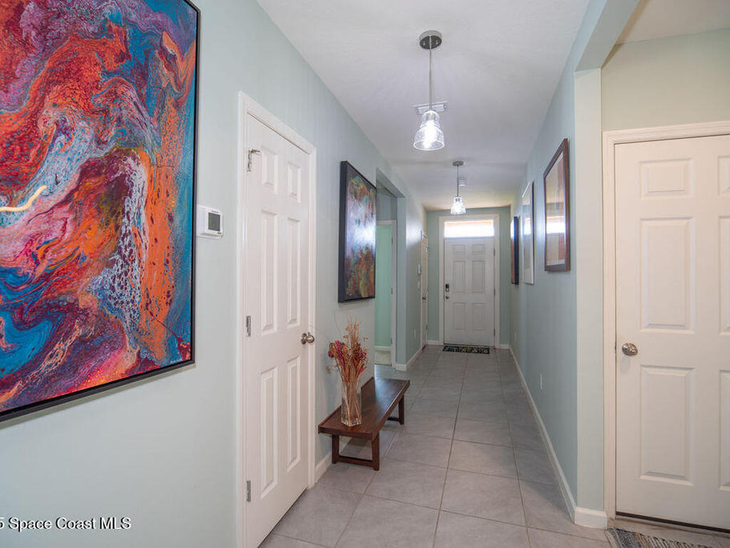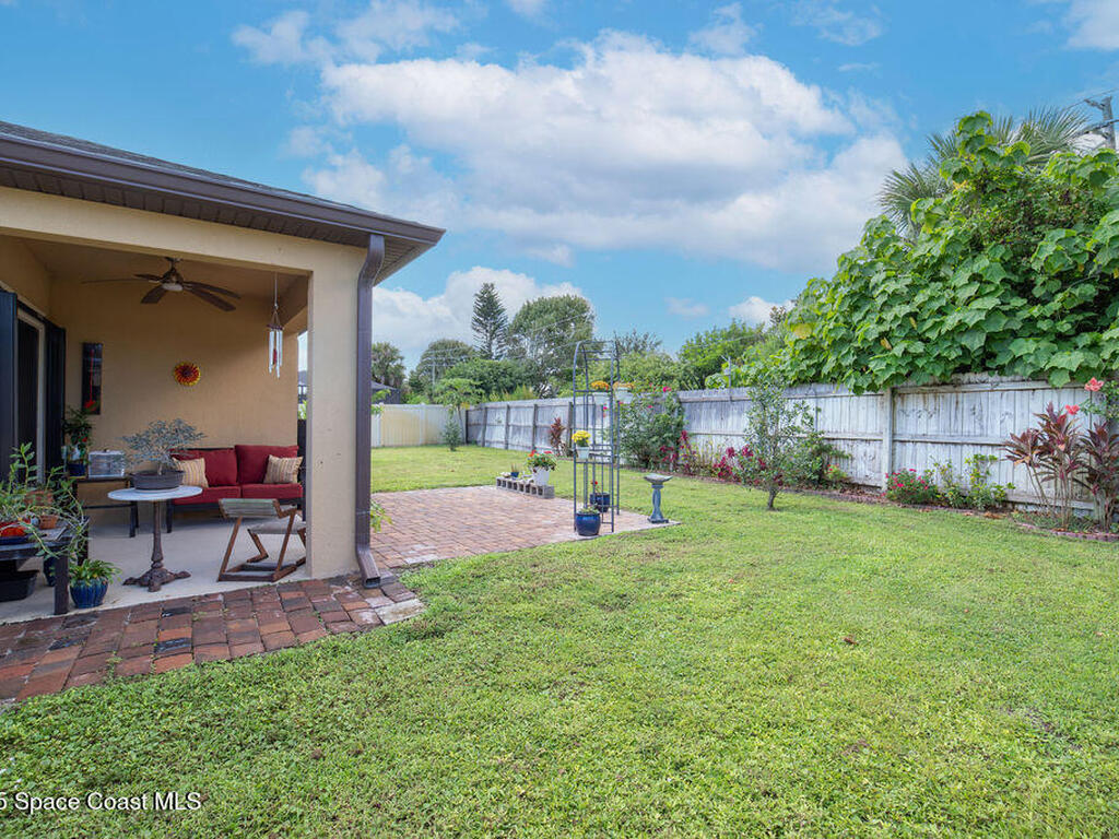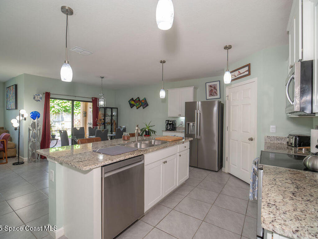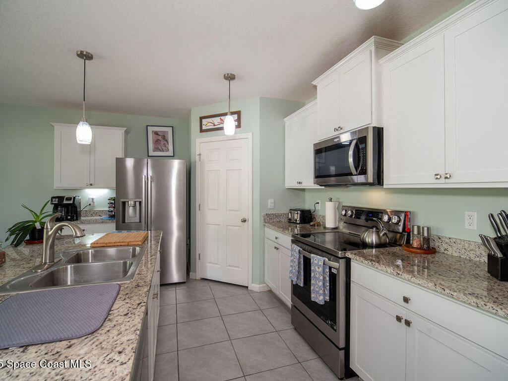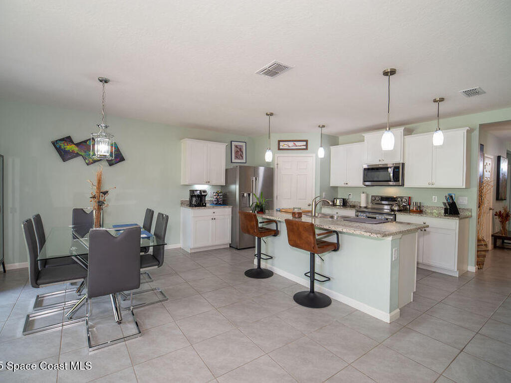 Welcome to 7386 Amethyst Avenue, a stunning move-in ready home located in the highly desirable Crystal Bay community of Grant/Valkaria, Florida. This newer construction residence features the popular Cali floorplan, offering a spacious single-story layout with four bedrooms, two full bathrooms, and a two-car garage. The heart of the home is a large kitchen island that seamlessly connects to the dining area and living room, creating an open-concept space perfect for entertaining or everyday living. The owner's suite is a true retreat, complete with a walk-in shower, double vanity, generous walk-in closet, and a separate linen closet for added convenience. Stunning expanded pavered drive & patio! The home is outfitted with stainless steel appliances, window blinds, and smart home technology through America's Smart Home system, allowing you to control key features from your phone with ease. Not to mention a 440 plug in the garage for EV charging!