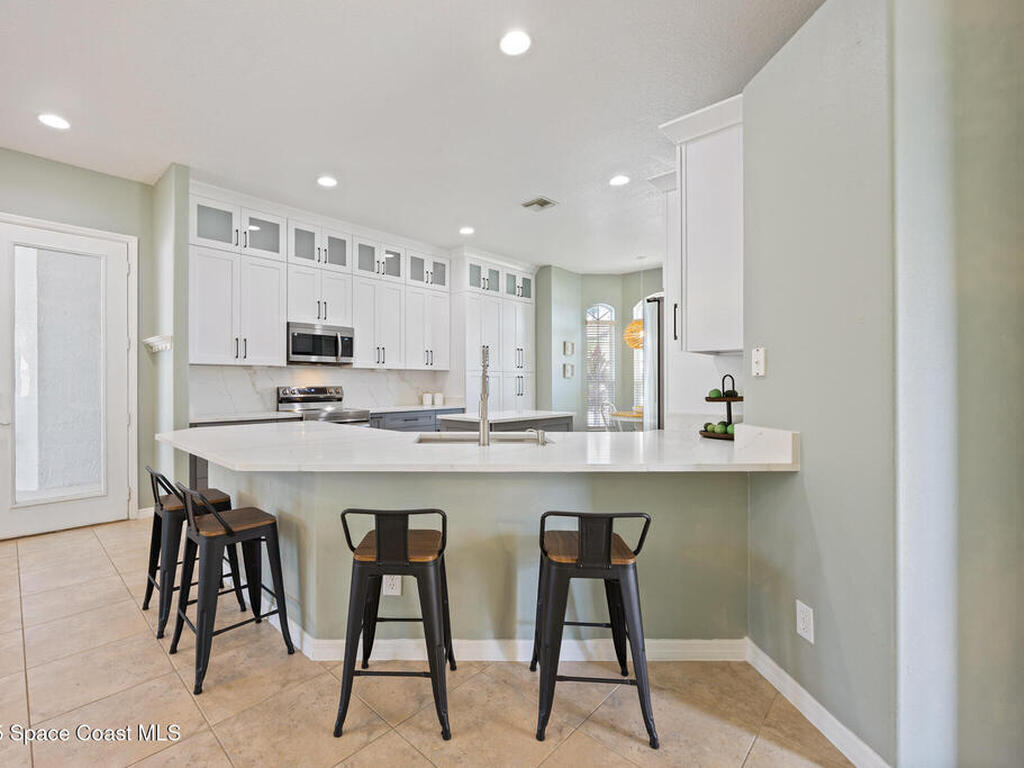 Welcome to the desirable Plantation Pointe community! This home offers a highly functional floorplan featuring 3 bedrooms, 3 full bathrooms, & DEDICATED office/den or 4th bedroom. Centrally located, this property is mins from shopping, dining, & 15 mins to the beach. Step inside to discover a beautifully updated brand-new kitchen boasting quartz countertops, abundant cabinetry, pull out drawers, updated lighting & plenty of counter space for cooking & ease of the holidays. Enjoy the breakfast nook, breakfast bar & large island. High ceilings, double door entry, & tile flooring throughout that create a bright, open, & low-maintenance living. This roomy waterfront home also offers versatile living w/separate quarters for the 3rd bedroom ideal as a private office, guest suite, or craft room. Finally, step outside to unwind in your private, screened, courtyard w/pool & newly built bar w/granite ideal for entertaining & more! This home will not last for long!!
