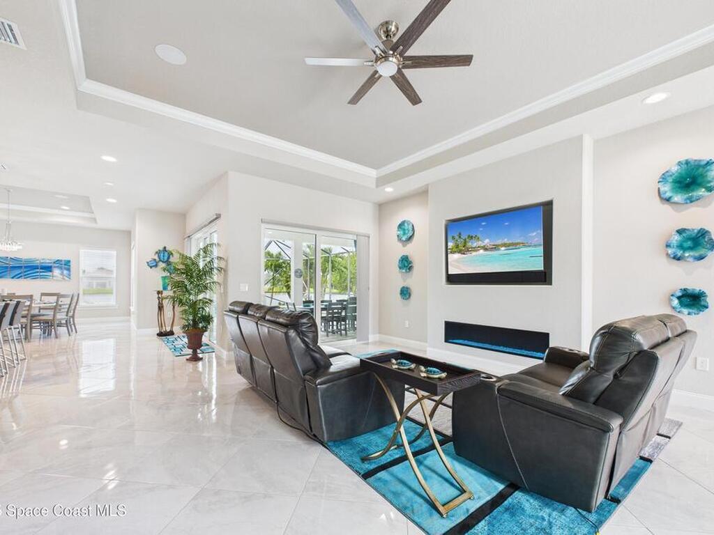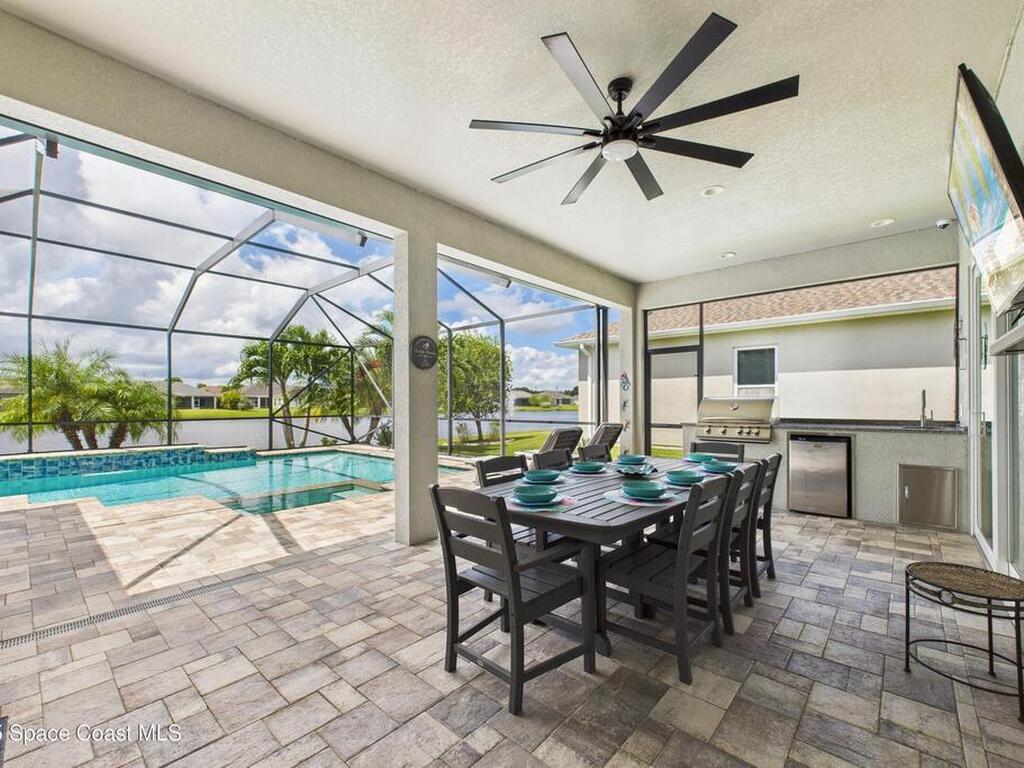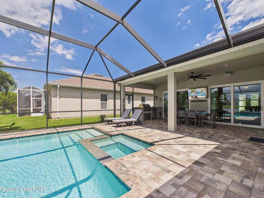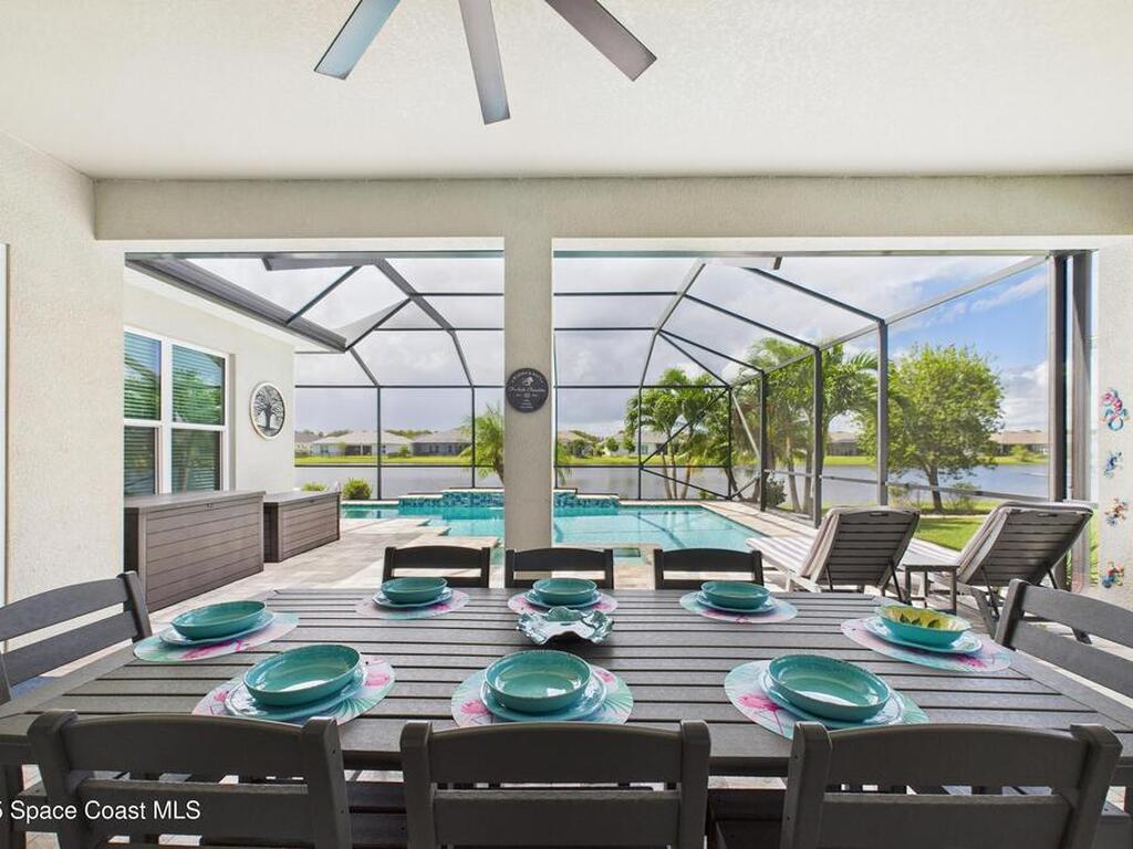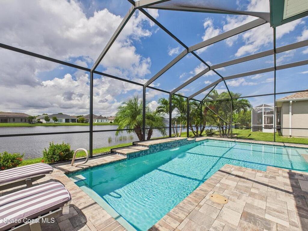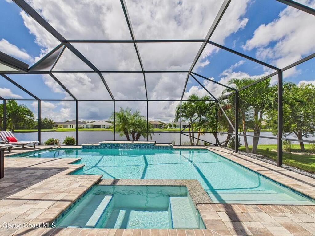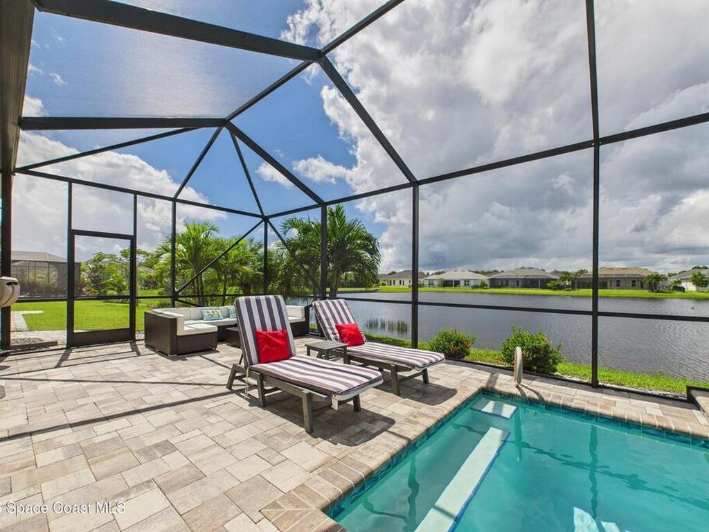 Upgrades galore in this immaculate, custom built home! As you walk through the double door entry you are greeted by the gleaming porcelain floors and a wonderful open floor plan. From the custom wet bar and buffet with wine fridge, to the stylish gas fireplace and chef's kitchen, this home was built for entertaining. A whole home sound system and tray ceilings add to the upscale feeling. Invite your guests outside to the gas heated pool and spa with salt system and intelligent controls. Have a glass of wine or cup of coffee as you enjoy your lake view with beautiful sunsets from your spacious paver pool deck. A whole home gas generator and hurricane impact windows insure your comfort through the storms of life. With an unbeatable location, you are just minutes to the beach and downtown Melbourne, and only about an hour to the Orlando airport. There is no shortage of storage in the oversized, epoxy coated garage, and you can even store a 4th car with the included lift!