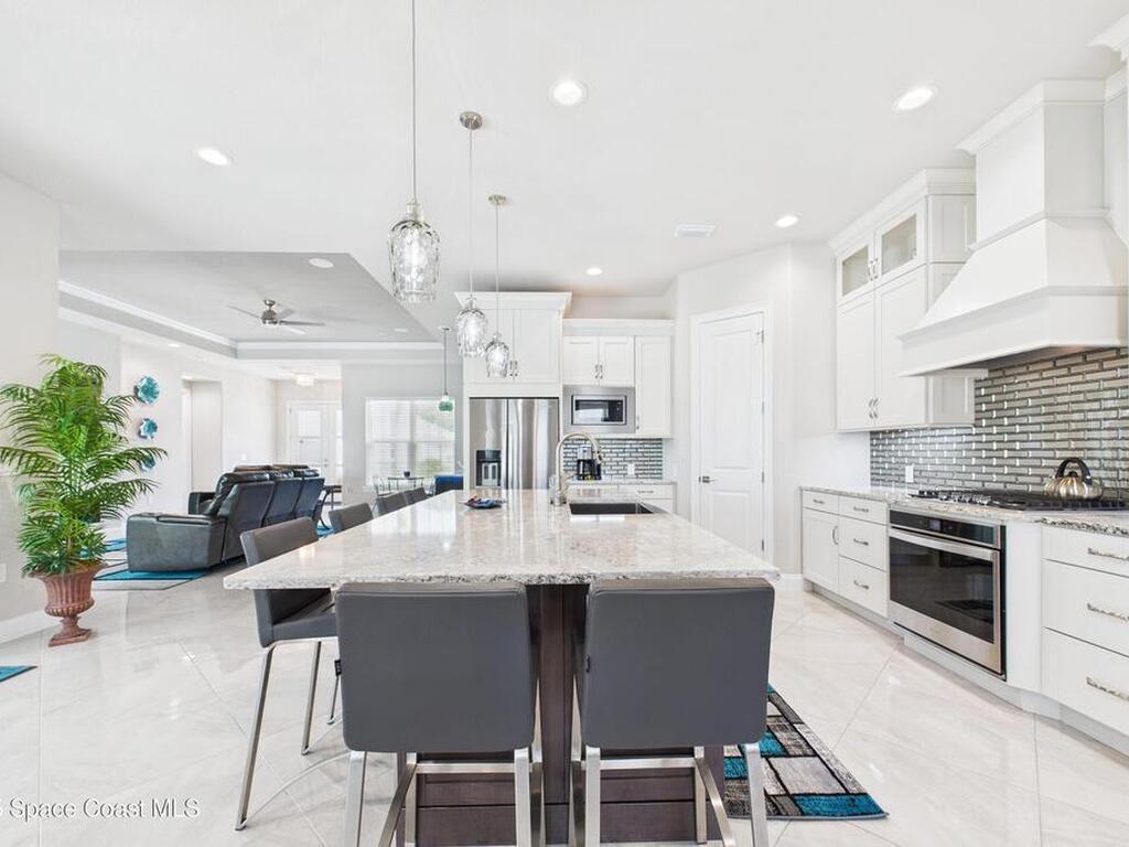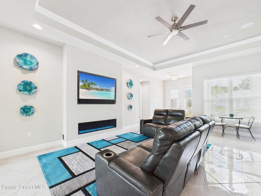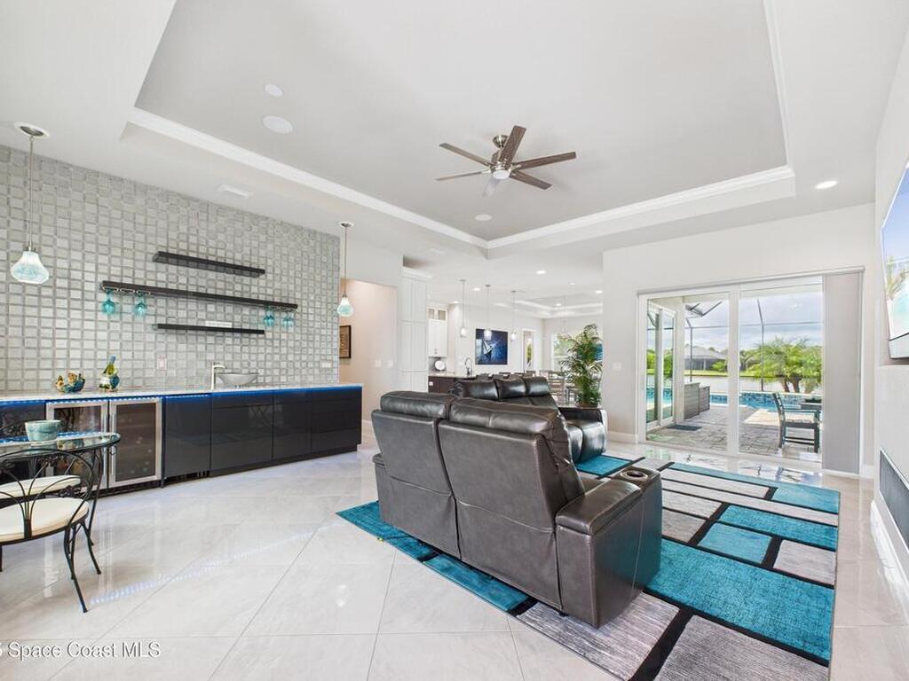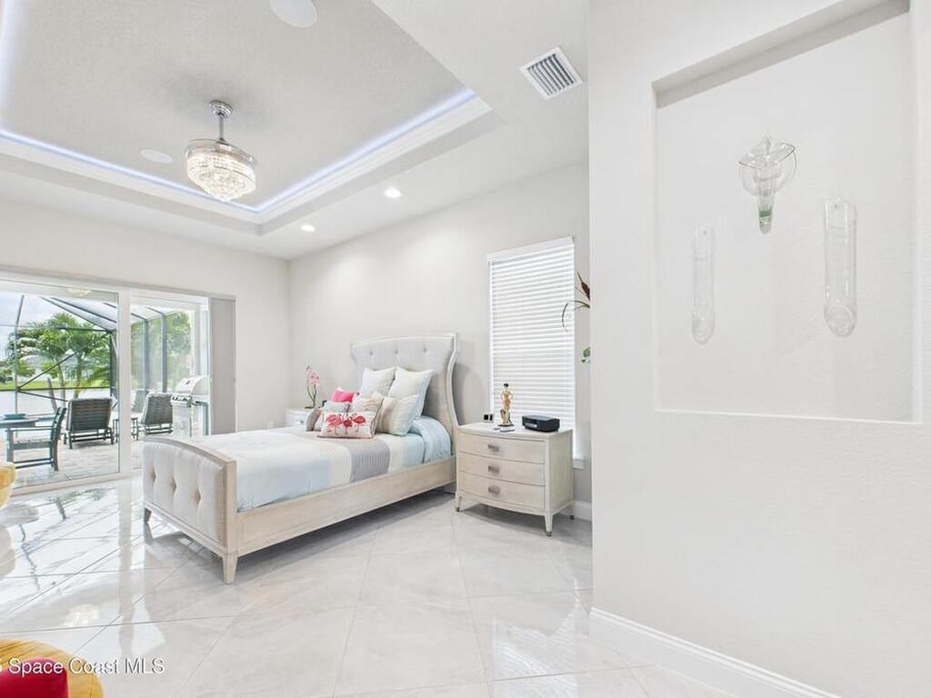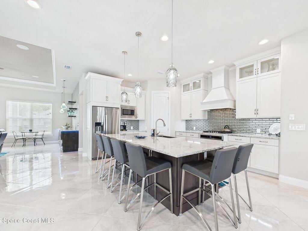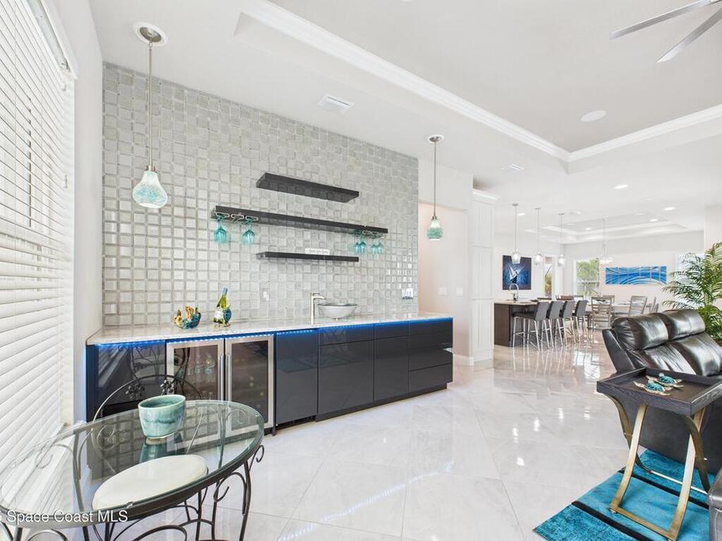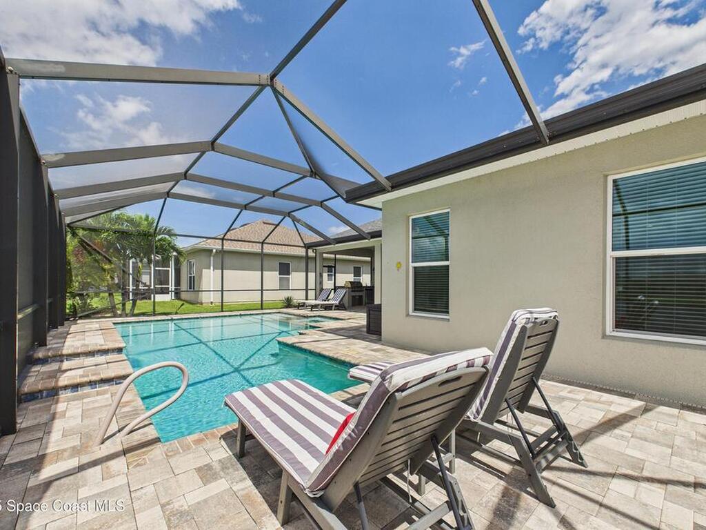 Upgrades galore in this immaculate, custom built home! As you walk through the double door entry you are greeted by the gleaming porcelain floors and a wonderful open floor plan. From the custom wet bar and buffet with wine fridge, to the stylish gas fireplace and chef's kitchen, this home was built for entertaining. A whole home sound system and tray ceilings add to the upscale feeling. Invite your guests outside to the gas heated pool and spa with salt system and intelligent controls. Have a glass of wine or cup of coffee as you enjoy your lake view with beautiful sunsets from your spacious paver pool deck. A whole home gas generator and hurricane impact windows insure your comfort through the storms of life. With an unbeatable location, you are just minutes to the beach and downtown Melbourne, and only about an hour to the Orlando airport. There is no shortage of storage in the oversized, epoxy coated garage, and you can even store a 4th car with the included lift!