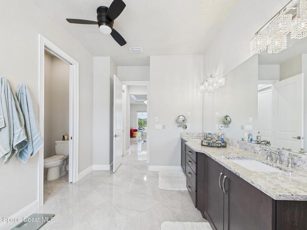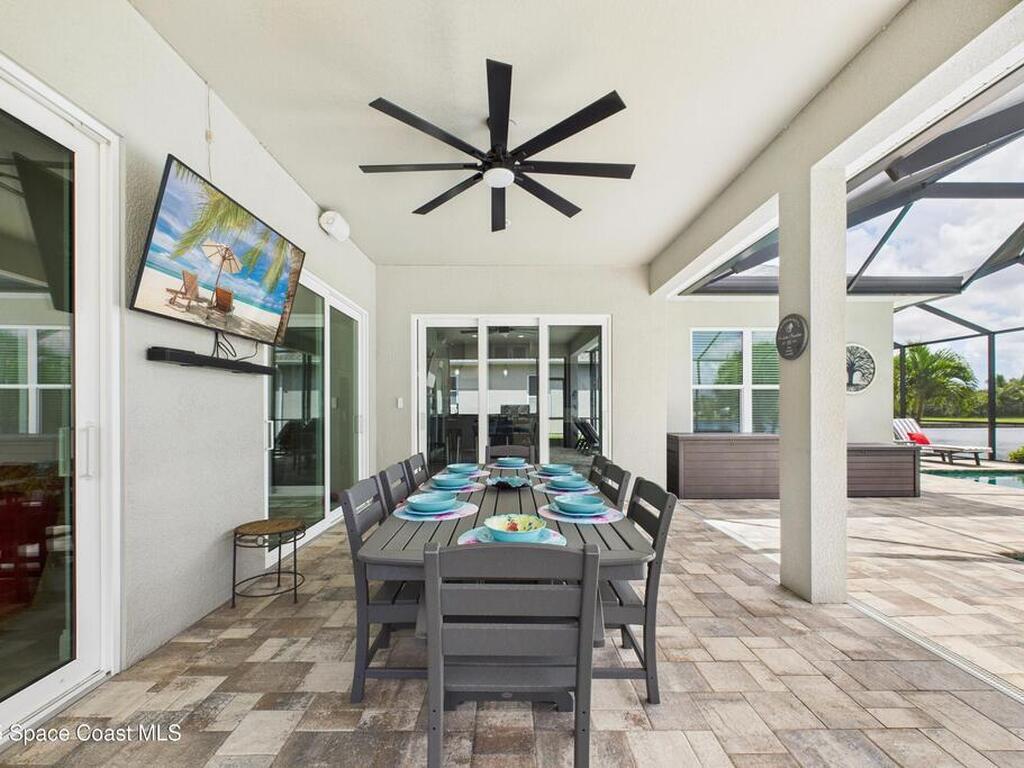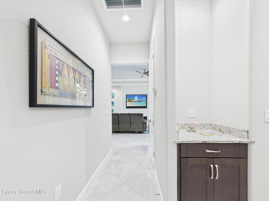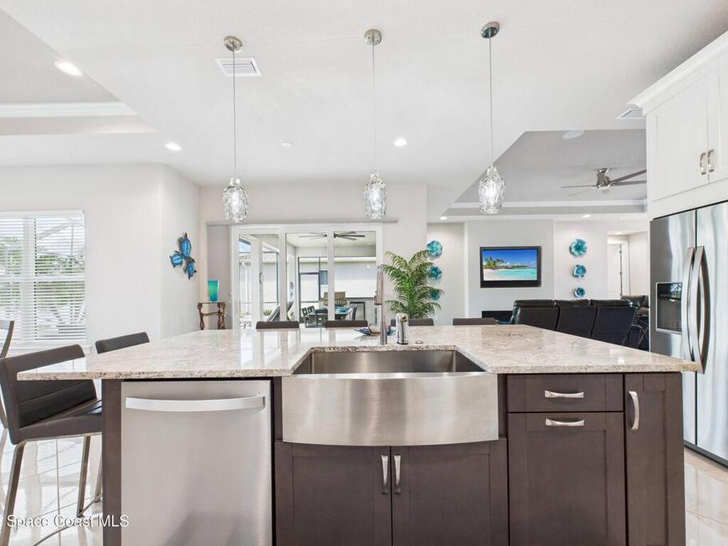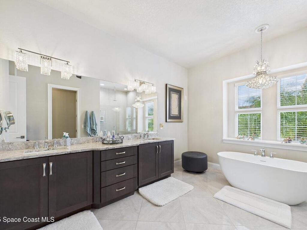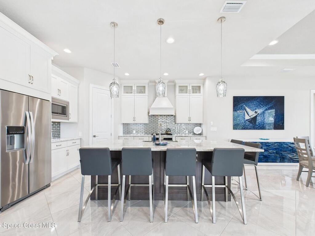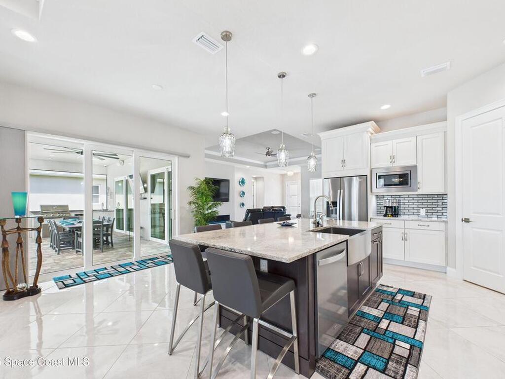 Upgrades galore in this immaculate, custom built home! As you walk through the double door entry you are greeted by the gleaming porcelain floors and a wonderful open floor plan. From the custom wet bar and buffet with wine fridge, to the stylish gas fireplace and chef's kitchen, this home was built for entertaining. A whole home sound system and tray ceilings add to the upscale feeling. Invite your guests outside to the gas heated pool and spa with salt system and intelligent controls. Have a glass of wine or cup of coffee as you enjoy your lake view with beautiful sunsets from your spacious paver pool deck. A whole home gas generator and hurricane impact windows insure your comfort through the storms of life. With an unbeatable location, you are just minutes to the beach and downtown Melbourne, and only about an hour to the Orlando airport. There is no shortage of storage in the oversized, epoxy coated garage, and you can even store a 4th car with the included lift!