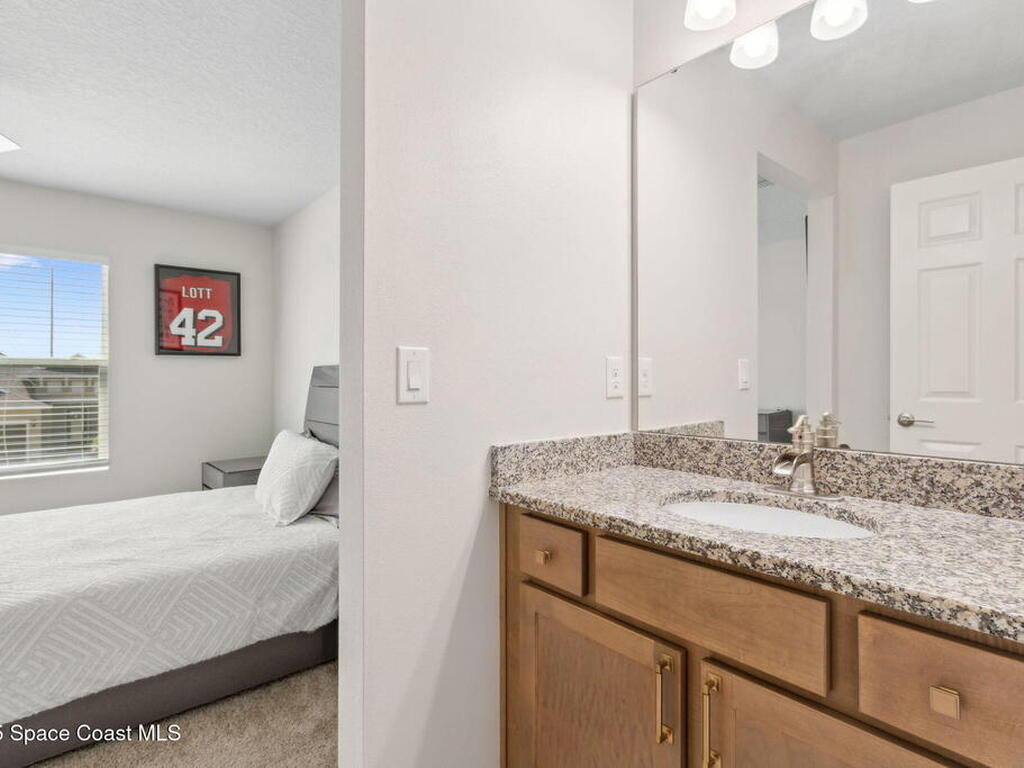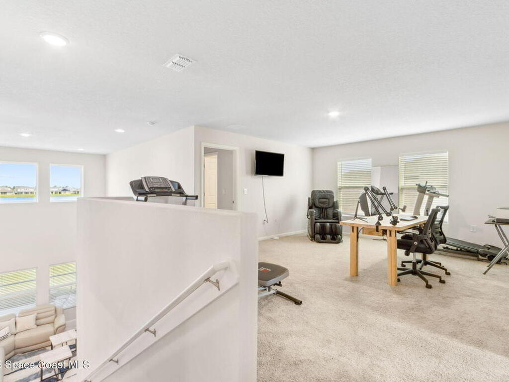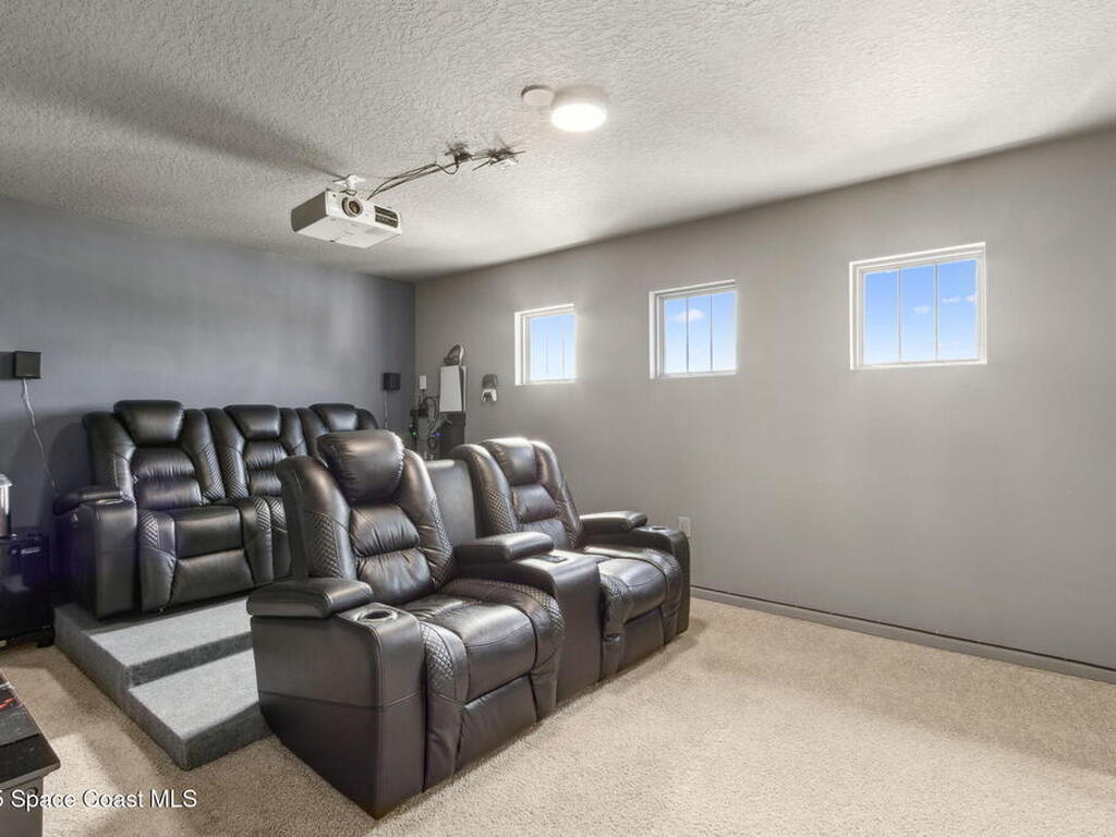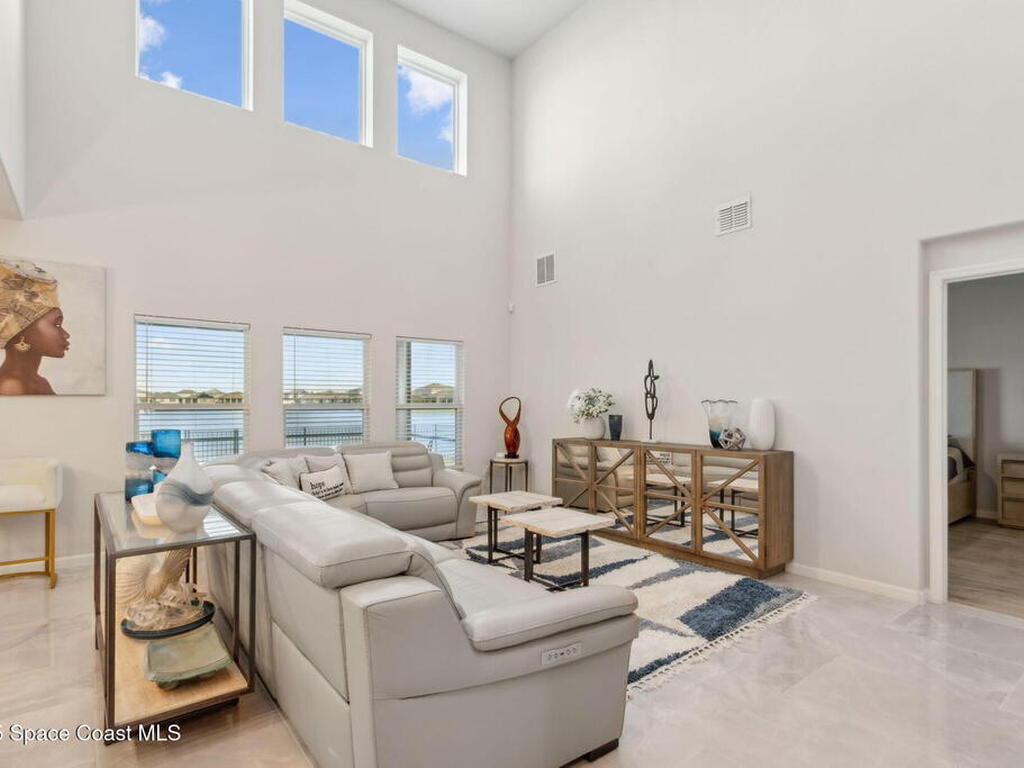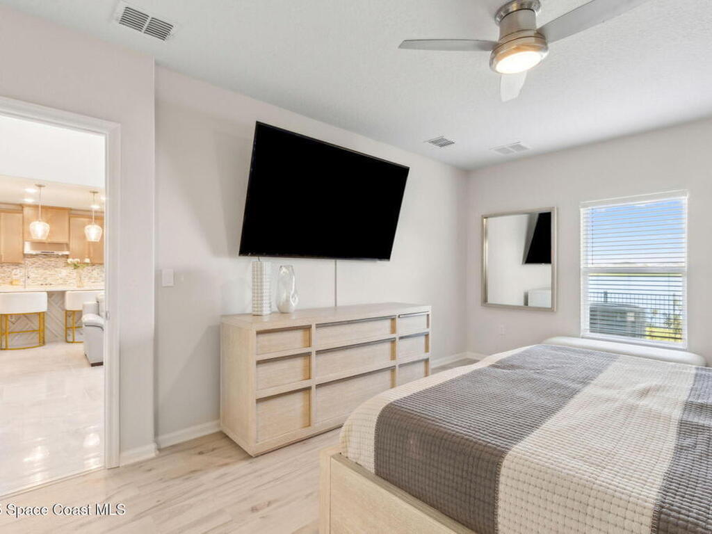 Stunning 5-Bedroom, 4-Bath Waterfront Home - Alexandria II ModelWelcome to this spacious and beautifully designed Alexandria II model, offering 5 bedrooms, 4 full baths, and exceptional lakefront living. The primary suite is conveniently located on the first floor, featuring serene water views and a luxurious ensuite bath. A guest bedroom or home office and a second full bath are also located on the main level, providing flexible living options.Upstairs, you'll find two bedrooms connected by a Jack-and-Jill bath, plus and additional bedroom with a private en-suite bath. A large media room with a built-in stage and theater-style seating completes the upper level, perfect for entertaining or family movie nights.The open-concept kitchen overlooks the family room and breakfast nook, with sliding glass doors leading out to a spacious covered patio- all capturing long, tranquil views across the lake. This home blends comfort, style and functionality in a prime waterfront