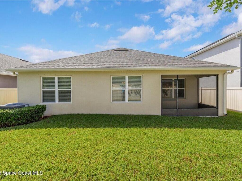 SMELLS LIKE A NEW HOME, LOOKS LIKE A NEW HOME!!! THIS ORIGINAL ONE-OWNER HOME HAS HARDLY BEEN LIVED IN! TAKE ADVANTAGE OF THE GATED COMMUNITY IN THE DESIRABLE FALLS OF PALM BAY; LOW HOA FEE AVERAGING $61/MONTH--BUS P/U FOR KIDS INSIDE SUBDIVISION, PLAYGROUND, SIDEWALKS, QUIET PRIVACY & PIECE OF MIND W/ TRANQUILITY OF WATER VIEWS; EXPRESS SERIES HOME--OPEN PALETTE TO DO YOUR PREFERRED FINISHING TOUCHES; SELLER HAS INSTALLED PRIVACY FENCE & SCREENED-IN PORCH; OPEN FLOOR PLAN; KITCHEN OPENS TO GREAT RM & DINING RM; LG PANTRY; SLIDER GOES TO SCREENED-IN PORCH & FENCED-IN BKYD; PRIMARY SUITE FEATURES WALK-IN CLOSET, DOUBLE SINKS IN BATHRM; SPLIT FLOOR PLAN--MEDITATION ROOM (3RD BEDRM) FEATURES DIRECT WATER VIEWS; UTILITY RM IS INSIDE IN THE A/C! FANTASTIC NEIGHBORHOOD AND EXCELLENT LOCATION--LESS THAN 0.6 MILES TO GROCERY, GAS, HARDWARE, DOLLAR STORE, GYM, THEATERS, ETC; SEE SUPPLEMENT FOR MORE INFO!! SUPER EASY TO SHOW--THIS ''NEW'' HOME WILL GO QUICKLY!! W/ RATES DOWN, DON'T MISS OUT!!