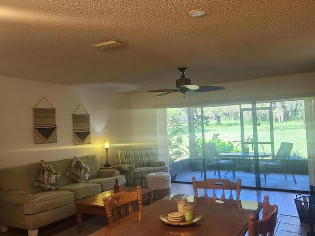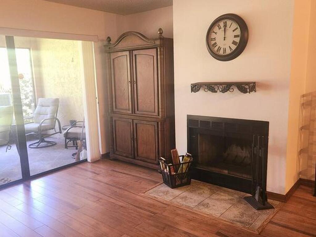 RARE FIND! Low HOA dues, Backyard, 3/3, double garage, inside laundry, wood-burning fireplace, backyard, large kitchen LaCita townhouse with golf course views! Downstairs features a spacious living/dining combo with fireplace and wood laminate flooring. Sliding glass doors lead out to the screened-in and tiled porch out back with beautiful views of the golf course. One bedroom is downstairs, master is upstairs as well as a second upstairs bedroom. Master bedroom opens up to a balcony that also overlooks the golf course.