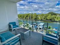 Welcome to luxury resort-style, waterfront living! This 3-bed, 2-bath fully furnished condo offers low-maintenance comfort in a prime location. The open layout features tile flooring throughout, a balcony for relaxing, and a spacious kitchen with ample storage, SS appliances, and quarts countertops. The primary suite includes a walk-in closet and private bathroom. There is a parking garage under the building and in unit laundry. Enjoy community amenities like a sparkling pool with a spa, fitness center, sauna, and on-site restaurant. Short-term rentals are allowed without restrictions, making this a perfect investment, vacation retreat, or full-time home.This waterfront community is situated on a marina and navigable canal to Indian River and Banana River with ocean access. Close to beaches, dining, shopping, Kennedy Space Center, and Port Canaveral!