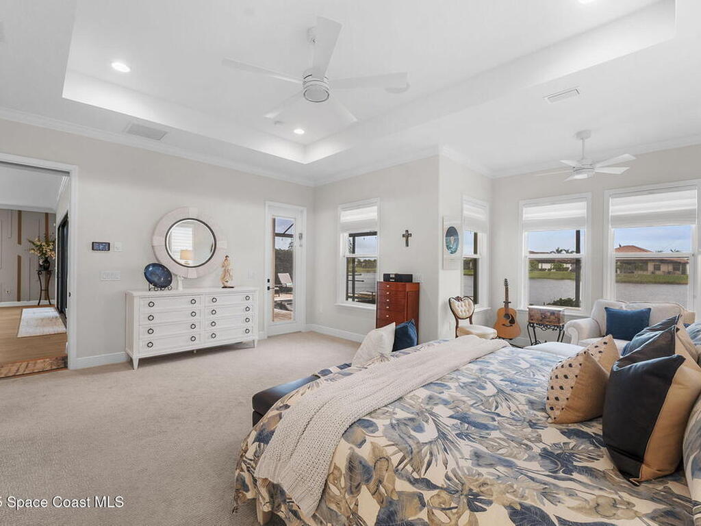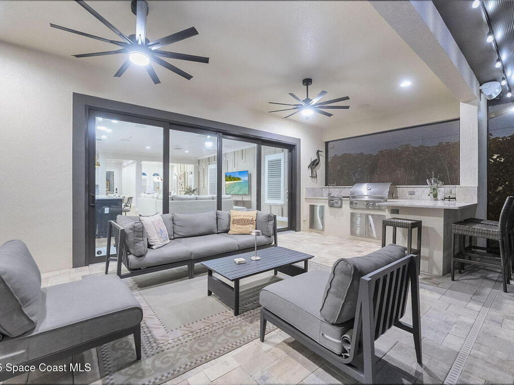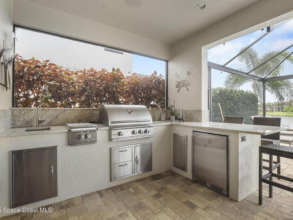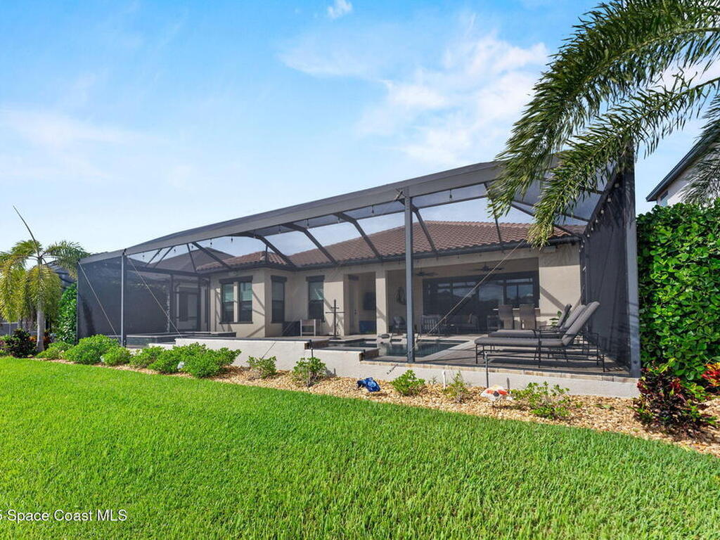 Offering a 1% lender credit when you use preferred lender!! W. Viera Lake front Pool Home in Reeling Park South offers the perfect blend of luxury & function. Designed for Florida living, showcasing a gorgeous pool & spa over looking the water, amazing outdoor kitchen, tile roof & hurricane-impact windows & doors. The oversized 2-car garage w/golf cart space adds convenience, while whole-home surround sound extends indoors & onto the back patio for seamless entertaining. Entertain in a gorgeous chef's kitchen w/ stunning 16-ft quartz island, Restoration Hardware pendant lights, SS appliances & abundant storage overlooking a spacious great room. The private primary suite features a walk-in closet & spa-like bath, while 2 guest bedrooms & baths provide comfort & flexibility. Modern upgrades shine thru-out. Residents enjoy a prime Viera location near The Avenues, Shopping, Dinning, golf, schools & beaches, Addison Village amenities including clubhouse, fitness center & resort-style pools