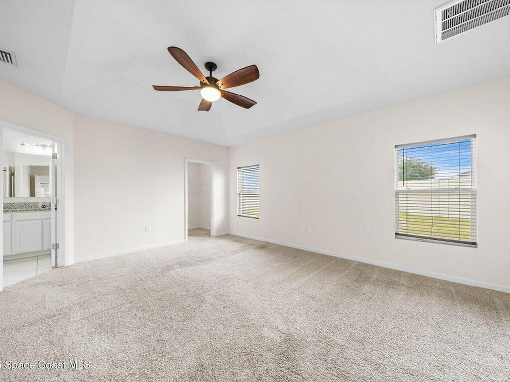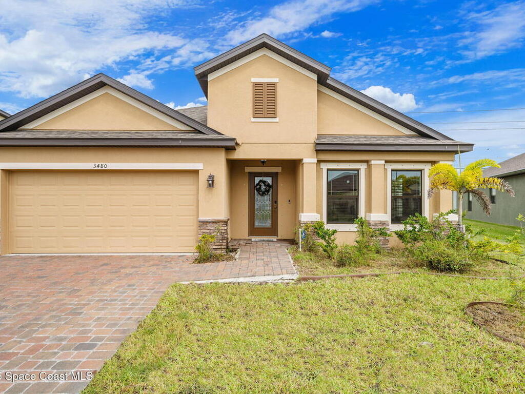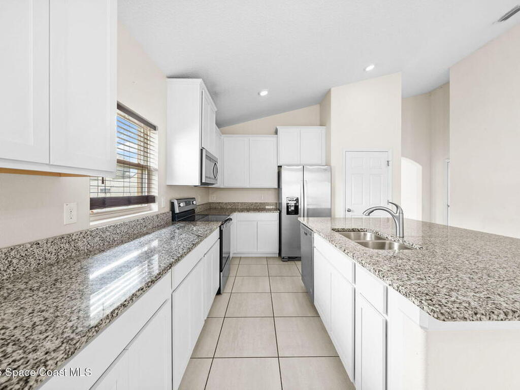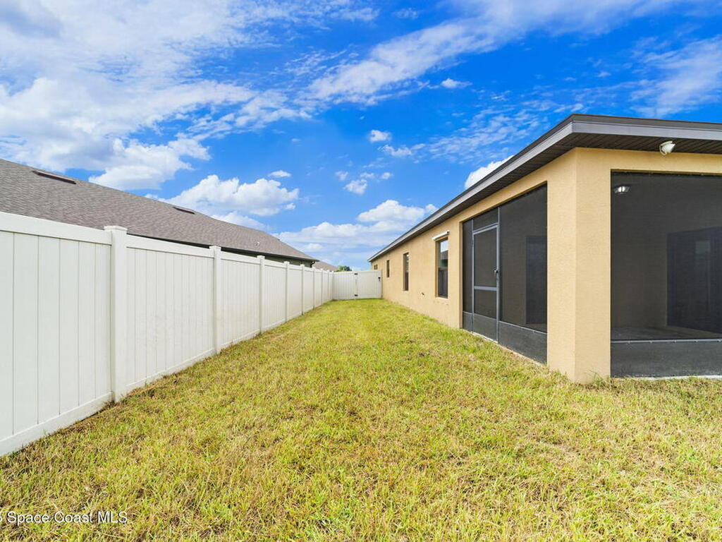 Welcome to this beautiful 2020-built Glenhurst model in the highly sought-after Palm Cove community of Rockledge! Built on one of the neighborhood's largest lots, this popular floor plan features an open layout with a bright kitchen boasting white shaker cabinets, granite countertops, and a large island that flows seamlessly into the spacious living and dining areas. The 18'x12' flex room with French doors is perfect for an office, playroom, or formal dining space. The owner's suite impresses with two walk-in closets, double vanities, a tiled shower, and a relaxing garden tub. Enjoy outdoor living on the screened patio overlooking the oversized, private fenced backyard. Additional upgrades include a new HVAC system, Low-E double-pane windows, storm shutters, and a brick-paver driveway. Centrally located minutes from The Avenues at Viera, I-95, beaches, and all the Space Coast has to offer, with a short commute to Orlando.