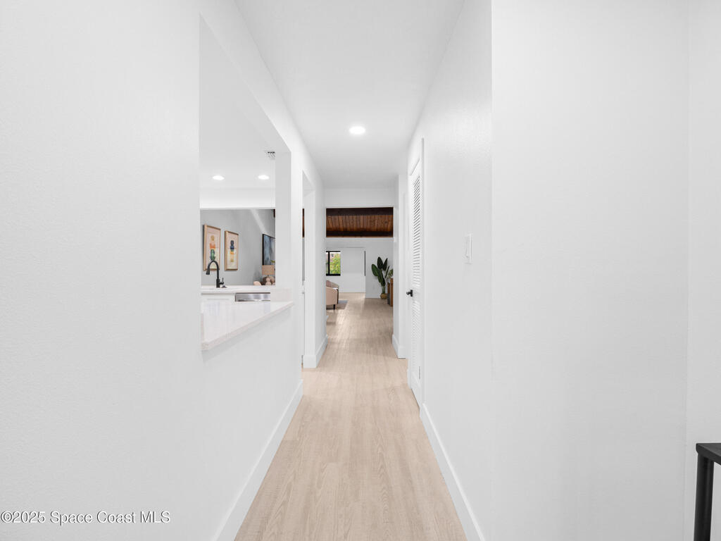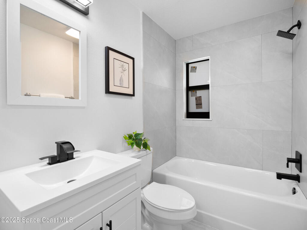 Welcome to this completely remodeled, RARE corner-unit townhouse in the heart of Suntree! This 3-bedroom, 2-bath home features a bonus living area, vaulted ceilings, expansive primary bedroom with a walk in closet and primary bathroom with a double vanity and shower. Enjoy peace of mind with Brand new hurricane impact windows, 2025 HVAC system, 2021 ROOF, 2019 Water heater, NEW luxury vinyl plank floors, NEW cabinets & countertops in the kitchen and bathrooms, NEW appliance, both bathrooms have NEW toilets, shower in one and tub in the other and wall tile! NEW modern recessed lights, fans, electrical outlets & switches throughout! Freshly painted throughout, this townhouse is move-in ready with no maintenance worries! Relax in serene outdoor spaces, all while being close to top local amenities, dining, and attractions. Convenient location that is walkable to the golf course, a perfect blend of comfort, style, and convenience--don't miss it!