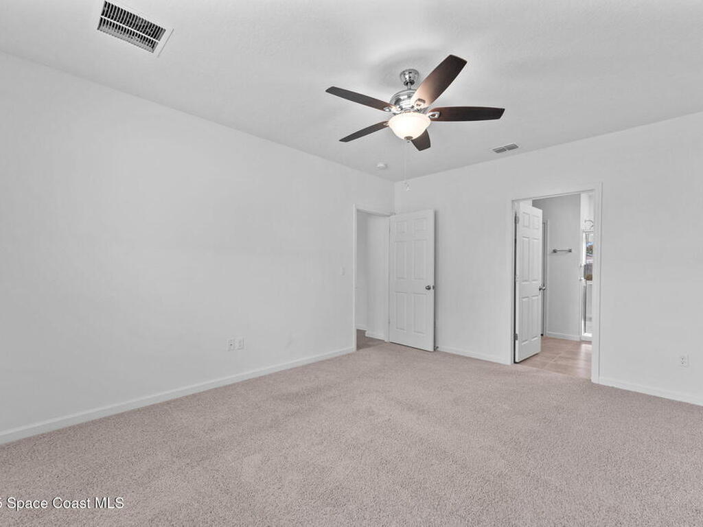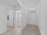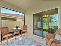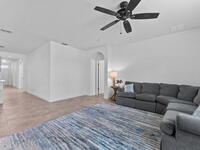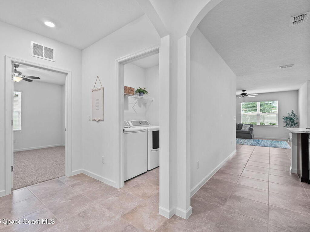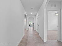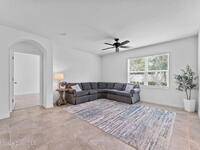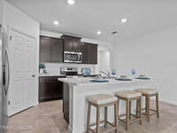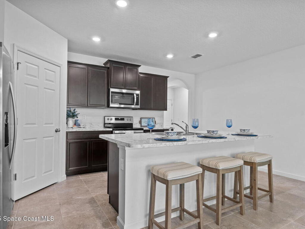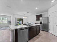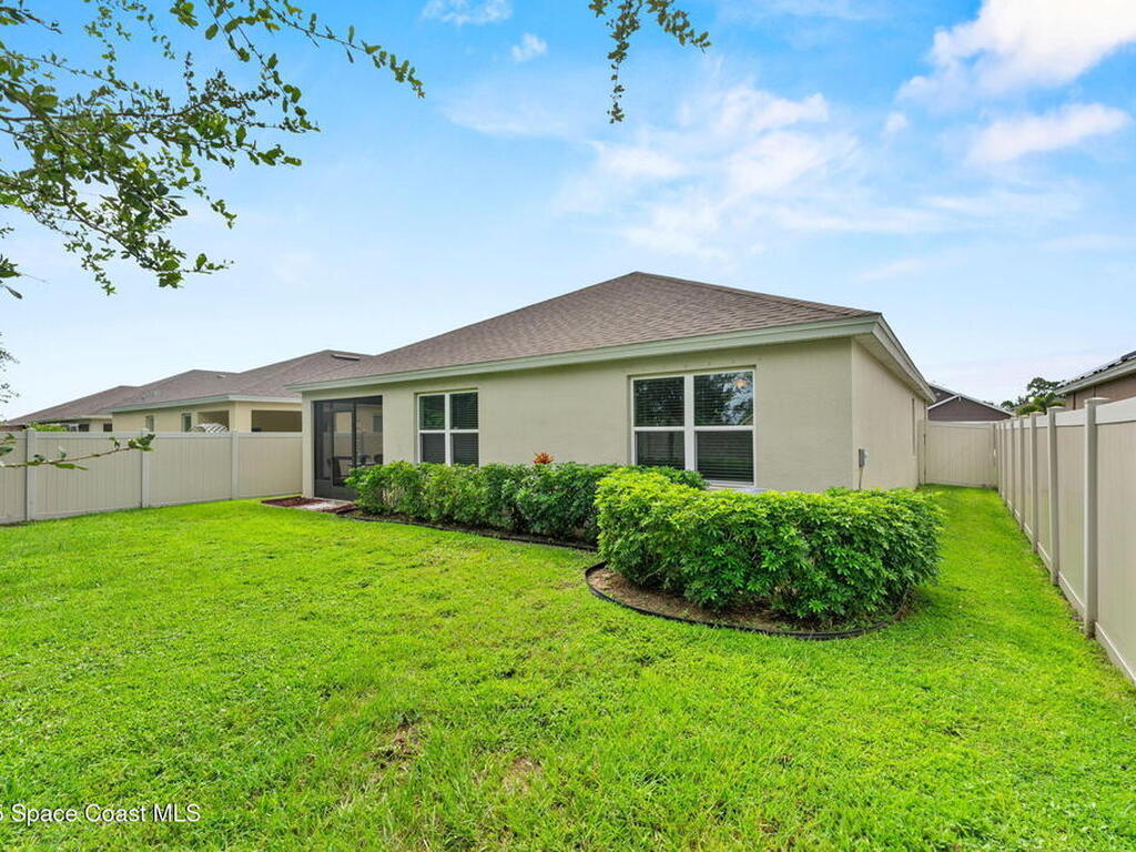 Welcome to this beautiful 4 BR 2 BA home built in 2020 offering a modern split floor plan with plenty of style and comfort. Designed as a smart home, it features an open concept layout with a spacious kitchen at its heart complete with a large island with bar seating, 36'' cabinetry, stainless steel appliances and a seamless flow into the great room and dining area, perfect for everyday living and entertaining. The primary suite is generously sized and includes a big walk in closet plus an additional closet, and a private bath with a walk in shower. Three of the bedrooms have new carpet while the main living areas feature easy care tile. Washer/Dryer are included along with window treatments and ceiling fans throughout. Step outside to a screened back porch overlooking a private backyard with a vinyl fence, sprinkler system and beautiful landscaping. Additional features include hurricane shutters and termite bond. This home has style, function and convenience - ready for new owners!