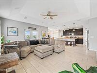 Welcome to your dream home in the highly sought after Sawgrass Lakes community! This stunning 4 bedroom, 3.5 bathroom home features a spacious open-concept layout ideal for entertaining and family living. Enjoy a dedicated office for work or study and a private guest suite with its own entrance and kitchenette, perfect for multi-generational living or long-term guests. Step outside to a screened-in patio overlooking peaceful waterfront views. The 3 car garage offers ample space for vehicles, storage, or a home gym. Residents enjoy resort style amenities including a clubhouse, zero-entry pool with waterslide, fitness center, tennis courts, playground, and walking trails. Located minutes from A-rated schools, premier shopping, and top restaurants, this home truly has it all, comfort, style, and an unbeatable location.
