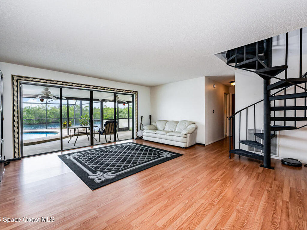 Imagine starting your morning poolside, coffee in hand, as dolphins swim by in the river. This waterfront retreat offers a rare blend of privacy, natural beauty, and convenience. Tucked away on a quiet dead-end street, it's surrounded by million-dollar homes and boasts beautiful Banana River views from nearly every room! Boaters will love the deep-water access.The property itself makes a striking first impression with its oversized circular driveway, stately oak tree, and timeless curb appeal. Inside, natural light floods every corner, creating a bright and welcoming atmosphere. The downstairs primary suite offers serene water views, generous closets, and ultimate privacy with no backyard neighbors.The open kitchen flows seamlessly to a covered patio, pool, and riverside family room--perfect for entertaining or relaxing with family and friends. Whether you're seeking a personal or a home designed for entertaining, this property is a blank canvas ready to become your dream home.