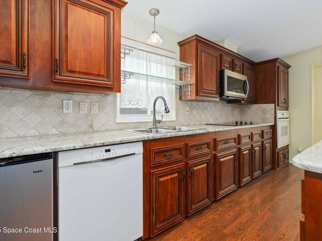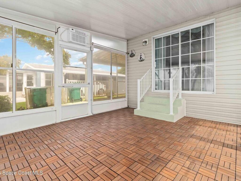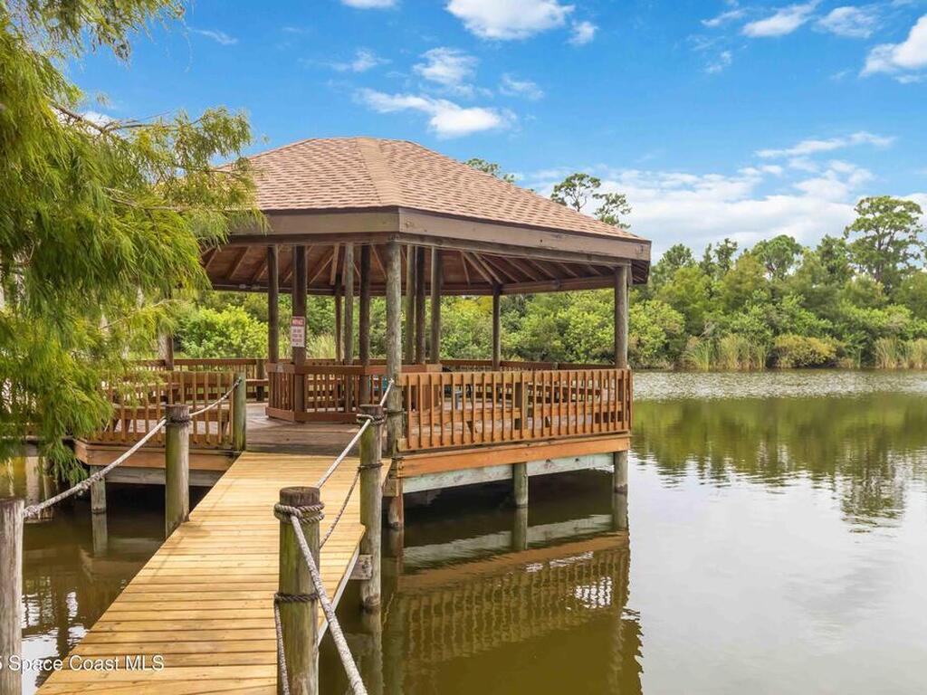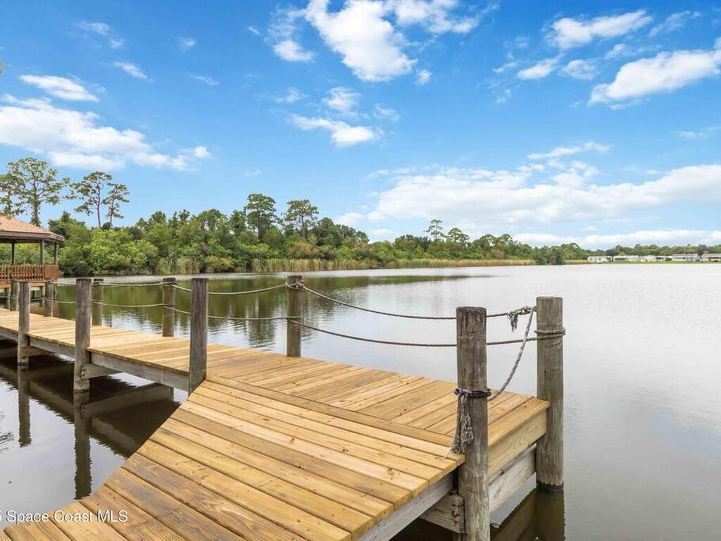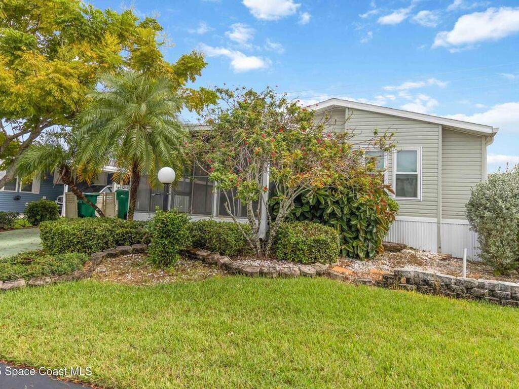 Welcome to Northwest Lakes, a gated 55+ community w/resort-style amenities! This 2 bedroom, 2 bath home features an updated kitchen w/granite countertops, high-end cabinetry, built-in pantry & stylish backsplash. The owner's suite offers a full bath w/tiled walk-in shower & 2 closets, while the guest bedroom includes a Murphy bed & walk-in closet as well. Enjoy nature from your enclosed front porch w/AC, perfect for entertaining. Indoor laundry with washer & dryer included. Upgrades galore with hurricane windows, plenty of storage space, attached shed & carport. Community features include clubhouse, shuffleboard, tennis, pickleball, heated pool & spa, gazebo on the lake, plus cable, internet, lawn care & security--all with a low HOA fee. Conveniently located near shopping, dining, just minutes to I-95, 25 minutes to the beach & 40 minutes to Orlando. And don't miss the majestic rocket launches! This home offers comfort, convenience & community! Call today, this one won't last long!