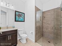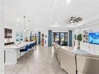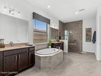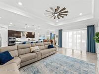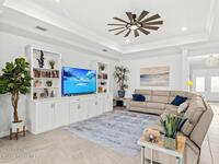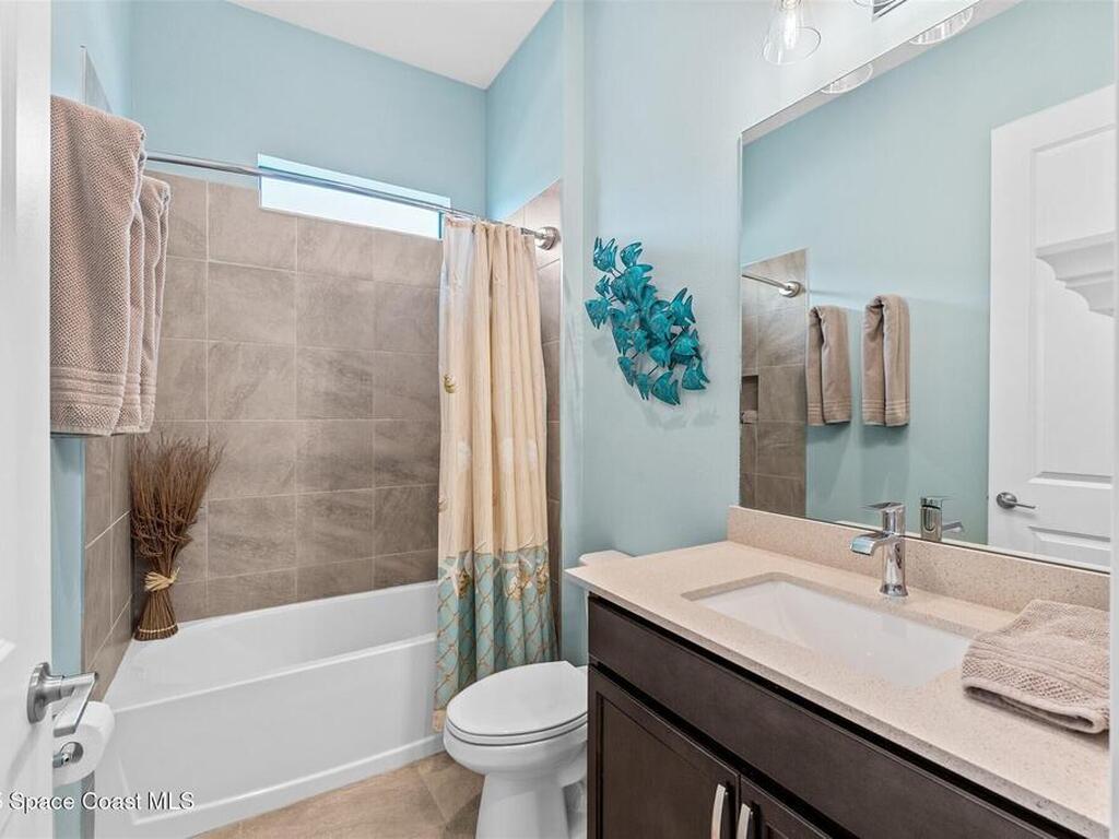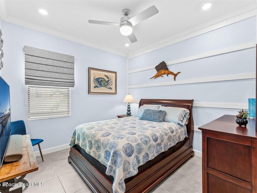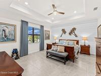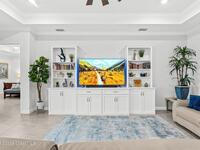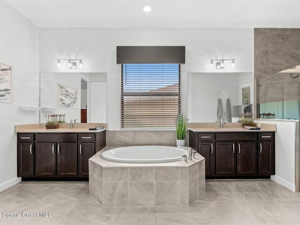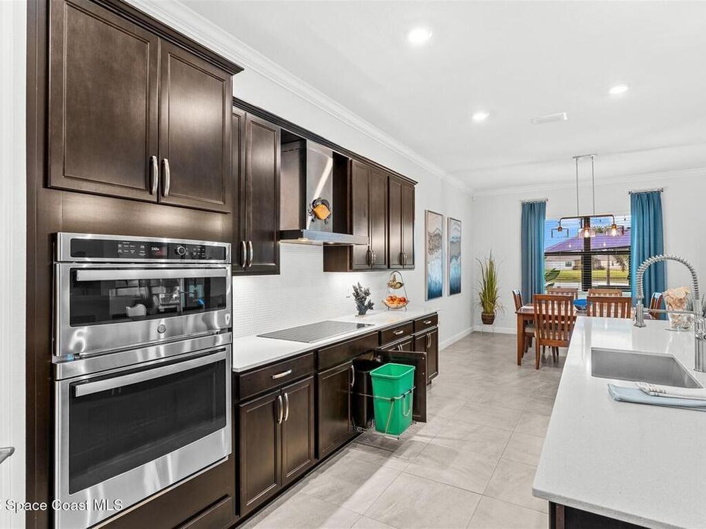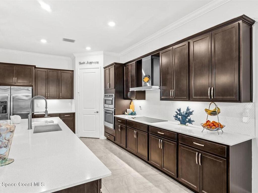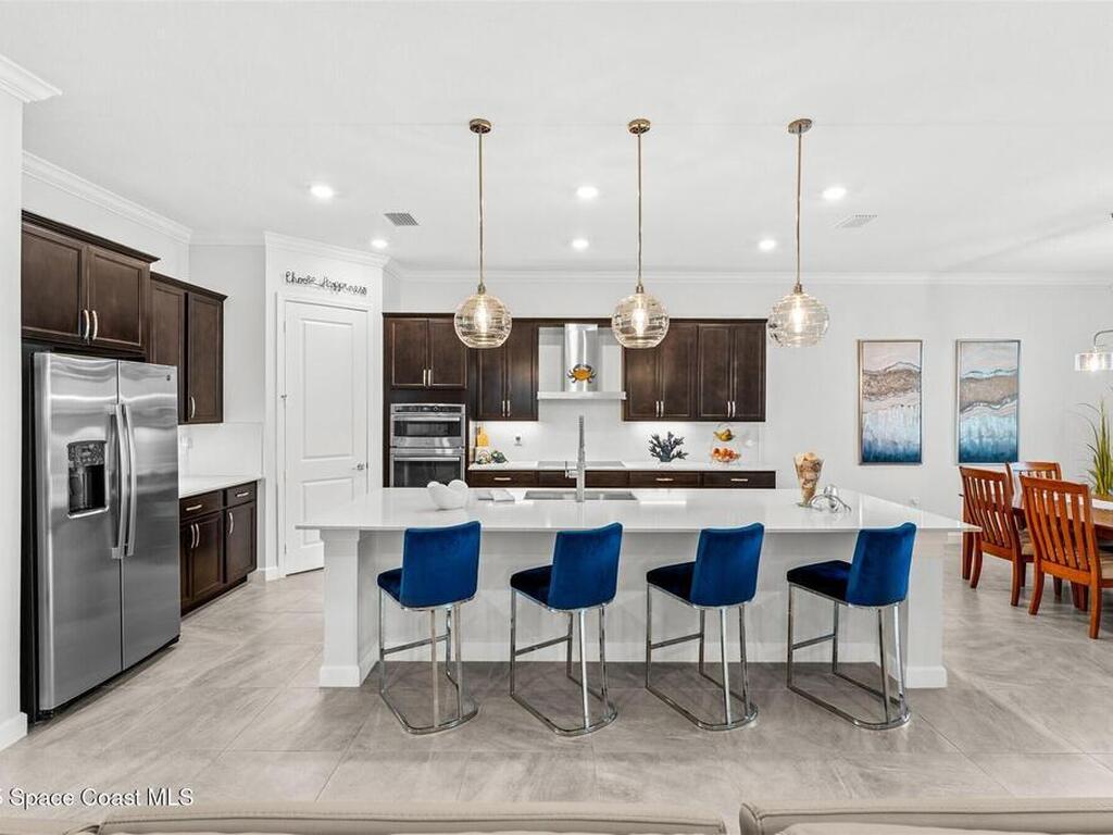 Waterfront luxury in Bridgewater, Viera's 55+ resort style gated community! This striking 3-bedroom + den, 3-bath, 3-car garage home was inspired by the builder's decorated model and features elegant upgrades such as custom shiplap accent walls and designer trim plus great room built-ins! Additional ''must-have'' features include IMPACT WINDOWS & SLIDERS, tile and crown molding throughout, a gourmet kitchen w/ wall ovens, cooktop and an oversized island. The primary suite boasts a sumptuous bath w/ walk-in shower, soaking tub, and dual walk-in custom closets. Perfect for entertaining, the great room's expansive sliders lead to a stunning 50'x15' screened lanai overlooking the water. And overnight guests enjoy their own en-suite retreat for comfort and privacy. Even the garage impresses with epoxy floors, overhead storage, and 240V outlet for an electric car. Bridgewater's private clubhouse offers a heated pool, spa, fitness center, tennis & pickleball courts, and even a movie theater!