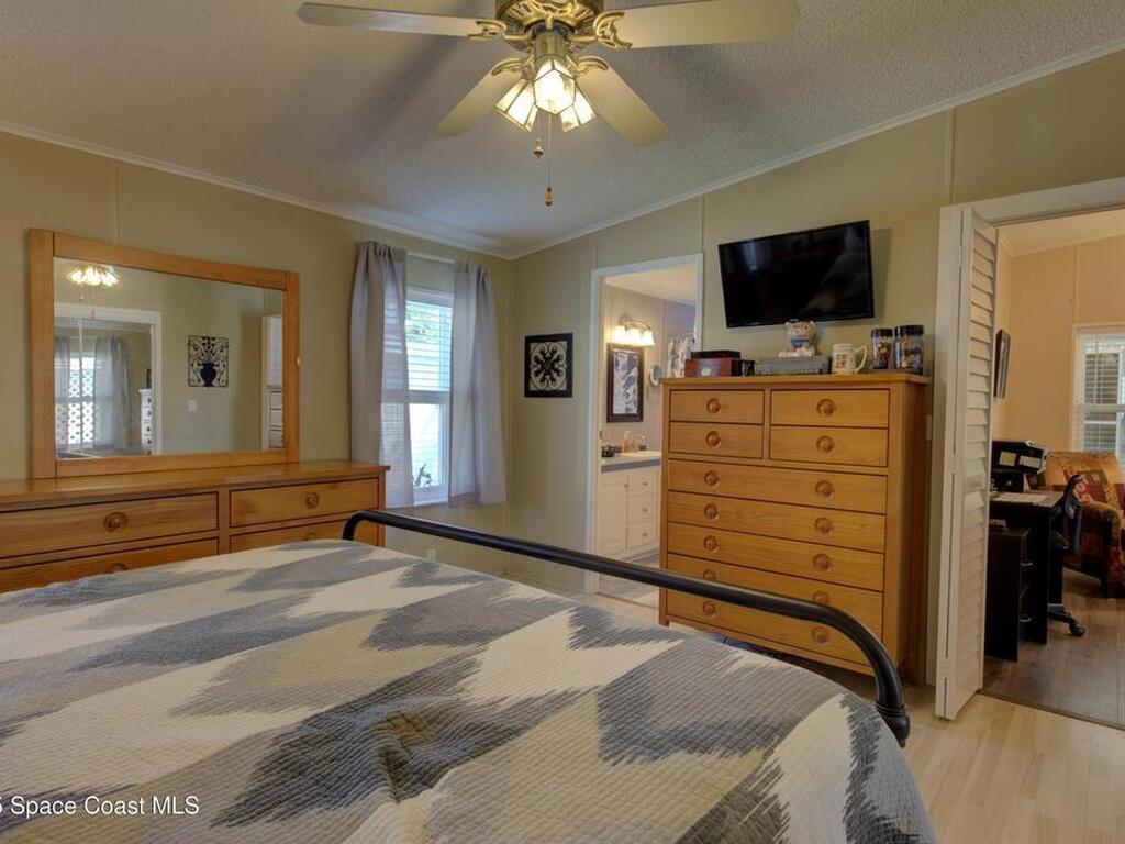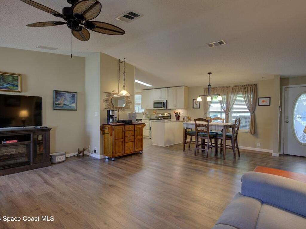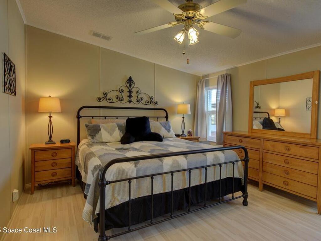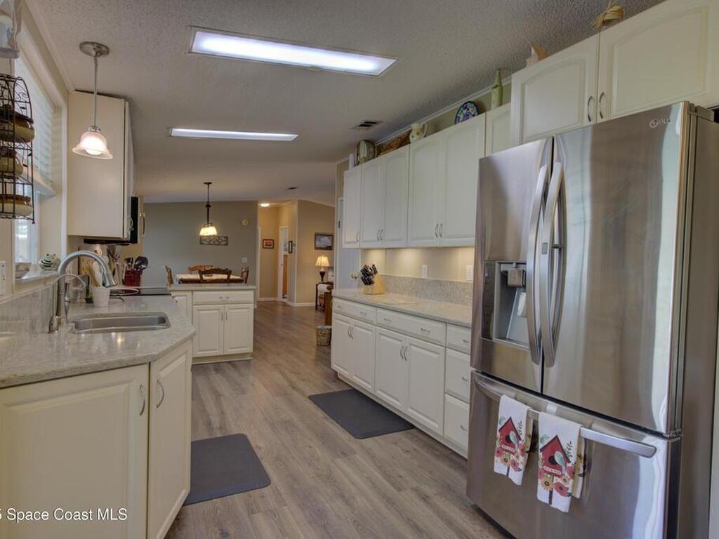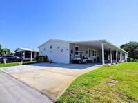 Welcome to your dream home in the highly desirable 55+ community of Northwest Lakes, where you own your land! This spacious 3 bed, 2 bath home offers incredible features and updates. Enjoy parking for up to 4 cars on the paver driveway. The home is equipped with impact windows for peace of mind. Inside, you'll find modern vinyl floors installed in 2023, a sleek metal roof, and a reliable HVAC system installed in 2018. The kitchen shines with beautiful quartz countertops and ample space for cooking. The split floor plan provides privacy, with the master suite featuring an office/sitting area. Step outside to enjoy the large enclosed back porch, side porch, and back deck, perfect for entertaining. With new drain lines installed in 2024 and a workshop shed, this home is as functional as it is beautiful. Don't miss this well-maintained gem in Northwest Lakes! Golf cart negotiable.