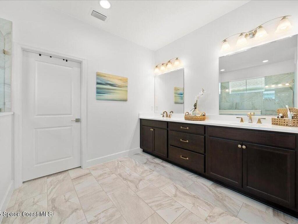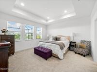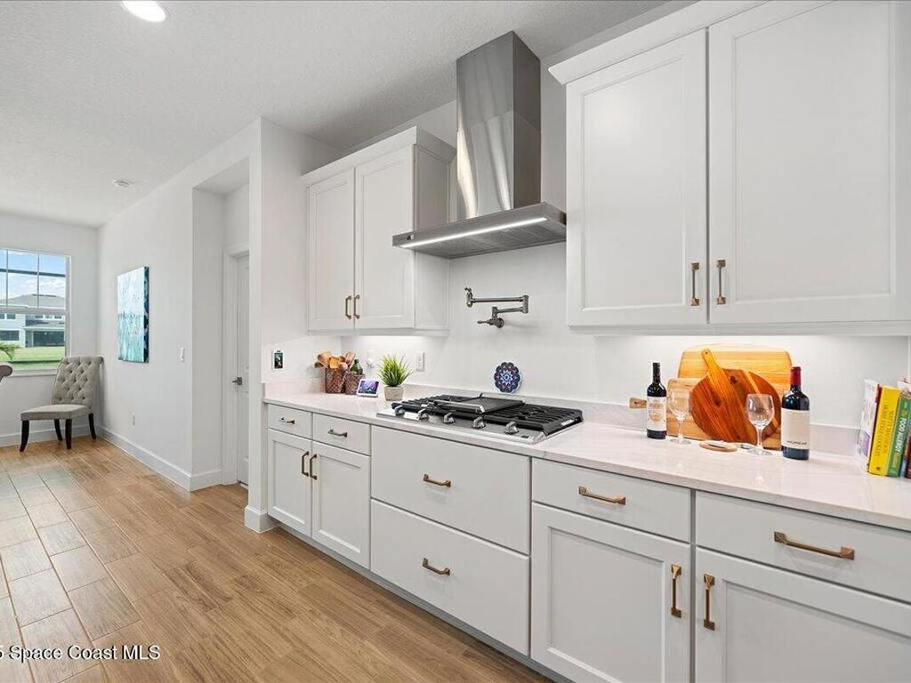 Showings For BACK-UPS Welcome! The ONLY Sloan II Model Available now in Pangea Park, Viera West is Move-In Ready. Skip the wait and step into this (almost new), late-2024 custom pool home--perfectly situated on a PREMIUM 1/4-acre lakefront, cul-de-sac homesite.Interior Highlights:* Designer finishes throughout: upgraded plank-style tile flooring in main living areas, with plush premium carpet and padding in bedrooms. * Chef-inspired upgraded gourmet kitchen: stainless appliance package, walk-in pantry, sleek level 6 quartz countertops, white soft-close cabinetry with under-cabinet lighting, a dramatic 9-foot island, champagne-gold hardware, and fixtures. A wall-mounted pot-filler faucet over the 36-inch 5-burner gas cooktop and custom stainless vent hood makes cooking feel like you're starring in your own ''Food Network'' episode.* Open-concept design: seamless flow between the great room, cafe, and kitchen that's ideal for entertaining or relaxed living.
