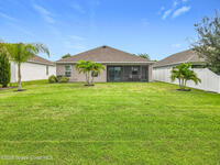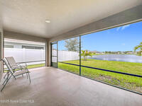 Fantastic Lakefront four Bedroom, two Bathroom, two car garage , CBS home in sought after Bayridge community! Why wait for new construction?Built by Holiday in 2020 with tons of upgrades, this home is move in ready. Fantastic open floor plan with great lake views combined with four bedrooms make this home perfect for families that need a little extra space. Primary suite features an amazing bathroom, door to back patio and a walk in closet. Chefs will love the kitchen with stainless steel appliances, center island with sink, upgraded cabinets and granite countertops. Close to dining and shopping in nearby Bayside Lakes, this south west Palm Bay home is a dream come true. Outside Air Conditioner just replaced, full gutters, irrigation system, fully landscaped and hurricane shutters all included. Why wait ?