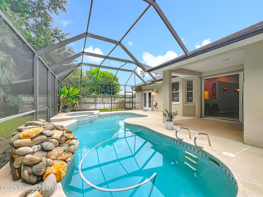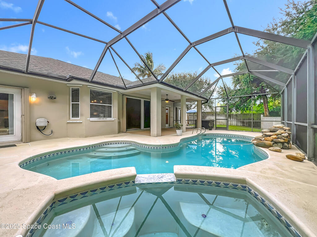 Stunning 3 Bedroom, 3 Bath, CBS home with 2 CG in AMAZING Sunnyland Beach. Hear the surf from your private tropical pool! Fantastic split floorplan with doors to the patio/pool in the primary and 2nd bedroom. 2nd bedroom features private bathroom as well. Cathedral ceilings and tons of natural light make this beach house feel light and bright.Features include amazing screened in pool, hot tub, outdoor shower, stainless steel appliances, tile throughout, recessed lighting, circular driveway, full irrigation system, 2022 roof, hurricane shutters, and much more. Sunnyland Beach is a friendly beachside neighborhood with a VOLANTARY, 75.00 per year POA . Private beach access is a short stroll from your front door, and great social events like the annual holiday golf cart and boat parade are always a good time! Sunnyland has a reverse osmosis water plant right in the neighborhood! No stinky well water here. Just 5 miles to Sebastian Inlet state park, this is truly a beachside paradise!
