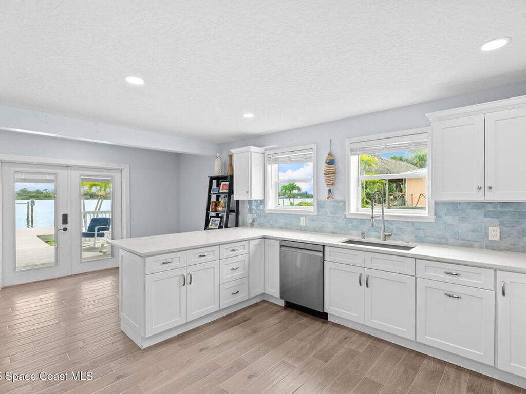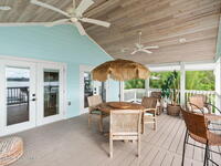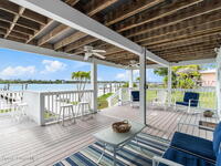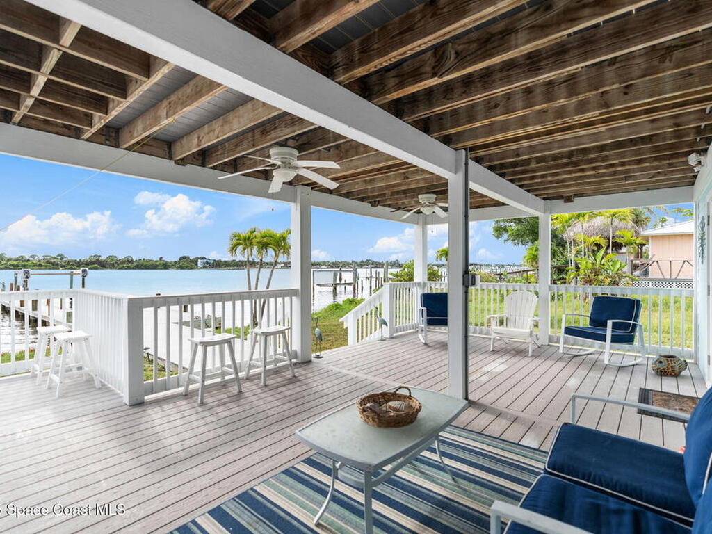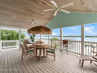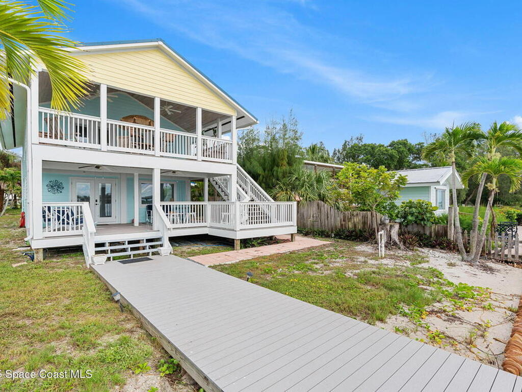 Discover your own private island getaway on VIP Island! This 3BR/2BA waterfront retreat offers 50' of water frontage, a private dock with boat lift, two updated kitchens and remodeled baths. This two story design provides separate living areas on each level, ideal for entertaining family and friends. Relax on breezy porches with panoramic water views; sip morning coffee as boats glide by, or cast a line from your own dock. Entertain in the evenings while watching the most stunning sunset views. Accessible only by boat, this home includes part ownership of a mainland lot on US-1 with secure parking, dockage, and a pontoon boat, making your island commute effortless. Cruise to sandbars and waterfront dining, then idle home under starlit skies. Perfect as a family retreat or year-round home.