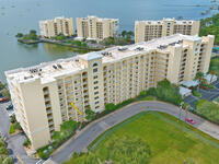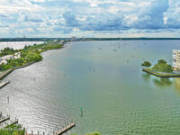Step into this spectacular Direct Indian River view gated community condominium. 3 larger than usual bedrooms two renovated bathrooms, custom hand painted tiles, cozy family room, 4th floor gem with one car garage under building plus one assigned parking outside. Ample visitor parking. This was a former builders model unit boasting 2, 323 square feet of inviting living space in the sought after Island Pointe Condominium complex. This 2006 built condo combines modern updates with timeless appeal, NEW AC 2023, ROOF IN 2024, PARKING LOT REPAVED 2024.This unit has many upgrades and added features such as the built - in cabinets to show off and display your items of interest. This modern resort has two swimming pools, two tennis courts, pickle-ball, clubhouse, with full exercise facilities. Spacious balcony with amazing views of launches and the Indian River. The wildlife such as the dolphins and manatees swim right by regularly. Perfectly finished wood and tile flooring throughout.
