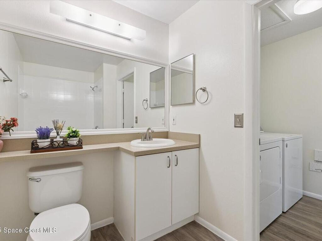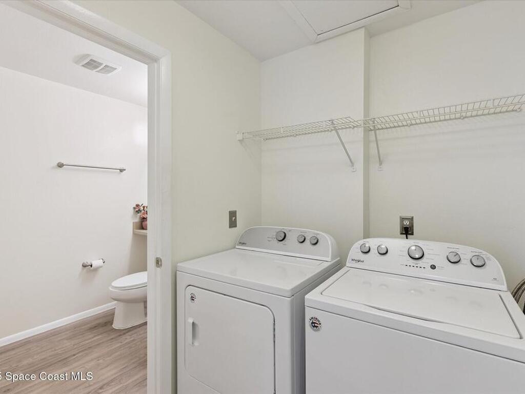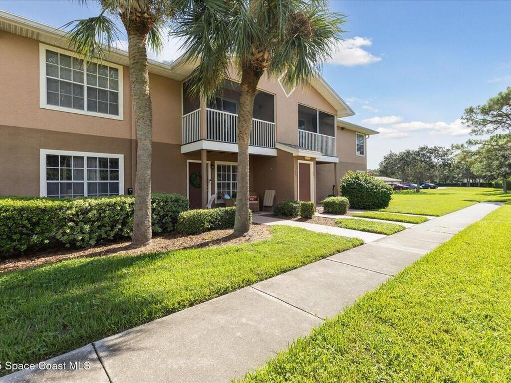 Beautifully updated 1 Bed, 1 Bath condo with serene lake views in the gated community of The Greens at Viera East. One of the lowest HOA fees in Viera, only $200/month, no assessments!!! HOA covers exterior maintenance & roof replacement. Community amenities include huge pool, heated spa, clubhouse w/fitness center, sidewalks, green space, walking paths, BBQ grills, and gazebo. This second-floor condo is in pristine condition! Recent updates: BRAND NEW A/C and water heater, wood-look vinyl plank flooring, and 5'' baseboards! PLUS refreshed paint, refinished countertops & bathtub, and updated hardware. Vaulted ceilings, open layout, in-unit washer/dryer, and screened porch. Primary bedroom is spacious with a large closet. Pet friendly: 2 cats/dogs allowed, no weight restrictions. Excellent location near beaches (15 min), Orlando Airport (45 min), Viera shopping, dining, and highly-rated schools. Rentals allowed (6-month min). Perfect as a primary home, seasonal getaway, or investment.