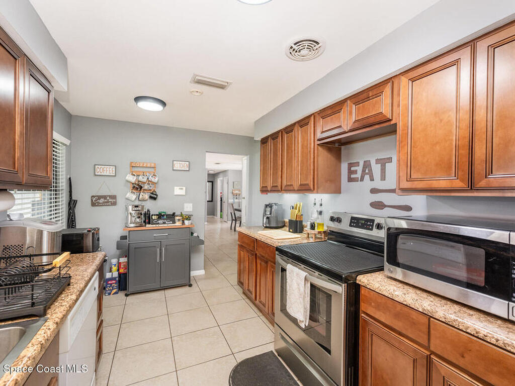 Welcome home to this updated gem! This one checks all the boxes - open concept, split floor plan, fully fenced yard features vinyl privacy fencing with a double gate at the side, making it easy to tuck your boat, RV, or other toys out of sight. Roof is just 4 years old. Garden shed for more storage. Plenty of room for a pool. There is even McLarty park behind the back fence. Close to schools and shopping. 45 minutes to Orlando. 10 minutes to the beaches!