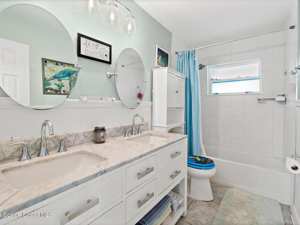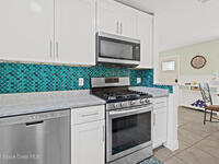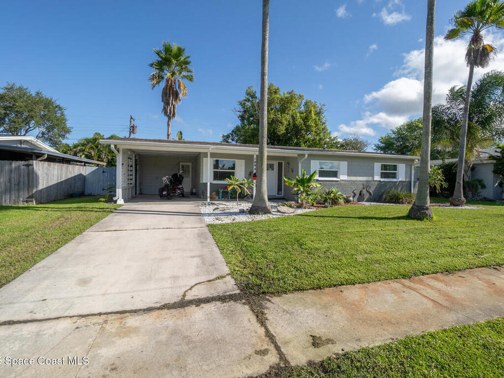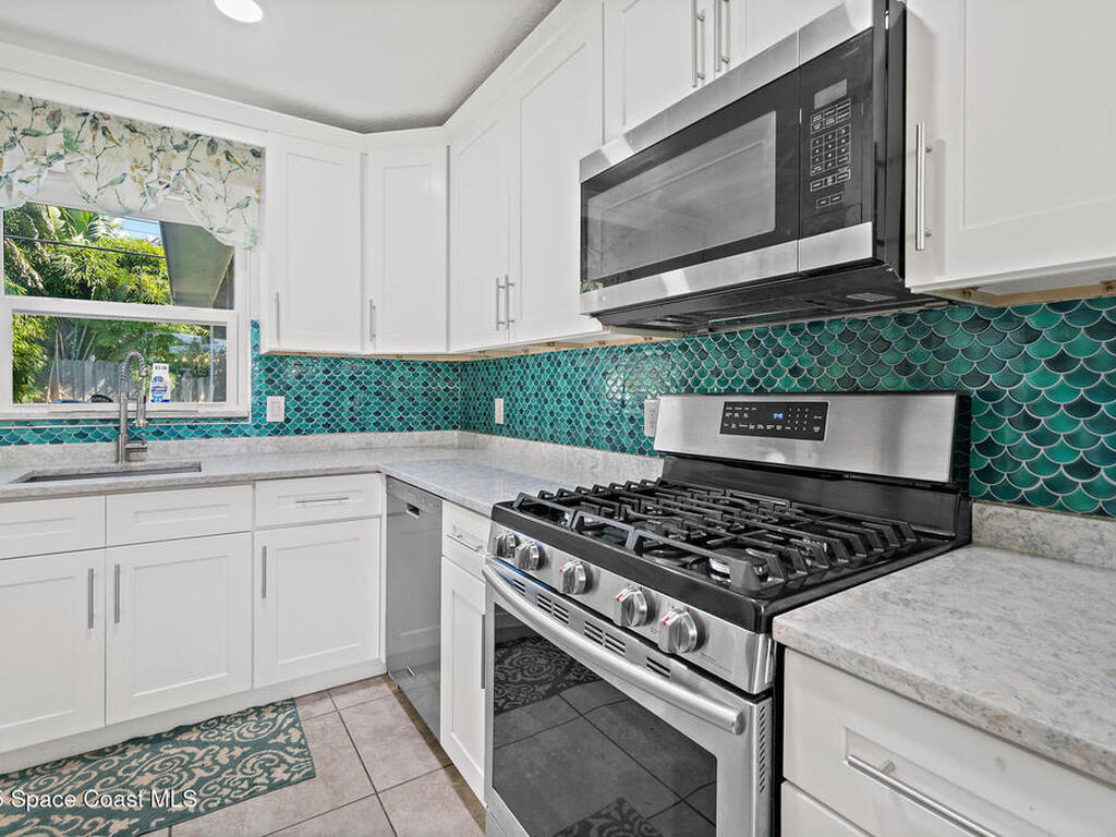 Remodeled, centrally located beautiful Rockledge home offers affordable living at its best with all-tile floors, a bright white kitchen featuring quartz countertops, backsplash, and a gas stove, plus hurricane impact windows and sliders for peace of mind. Modern fixtures throughout, and a spacious hall bath with a double-sink vanity add to its charm, while an indoor laundry room with pantry and extra storage ensures convenience. Enjoy the large screened lanai with vinyl windows overlooking the fenced backyard with shed and firepit. Ideally located just minutes from shopping, schools, and I-95, only 35 minutes to Orlando International Airport, and less than an hour to Disney, this home is truly move-in ready and has it all!