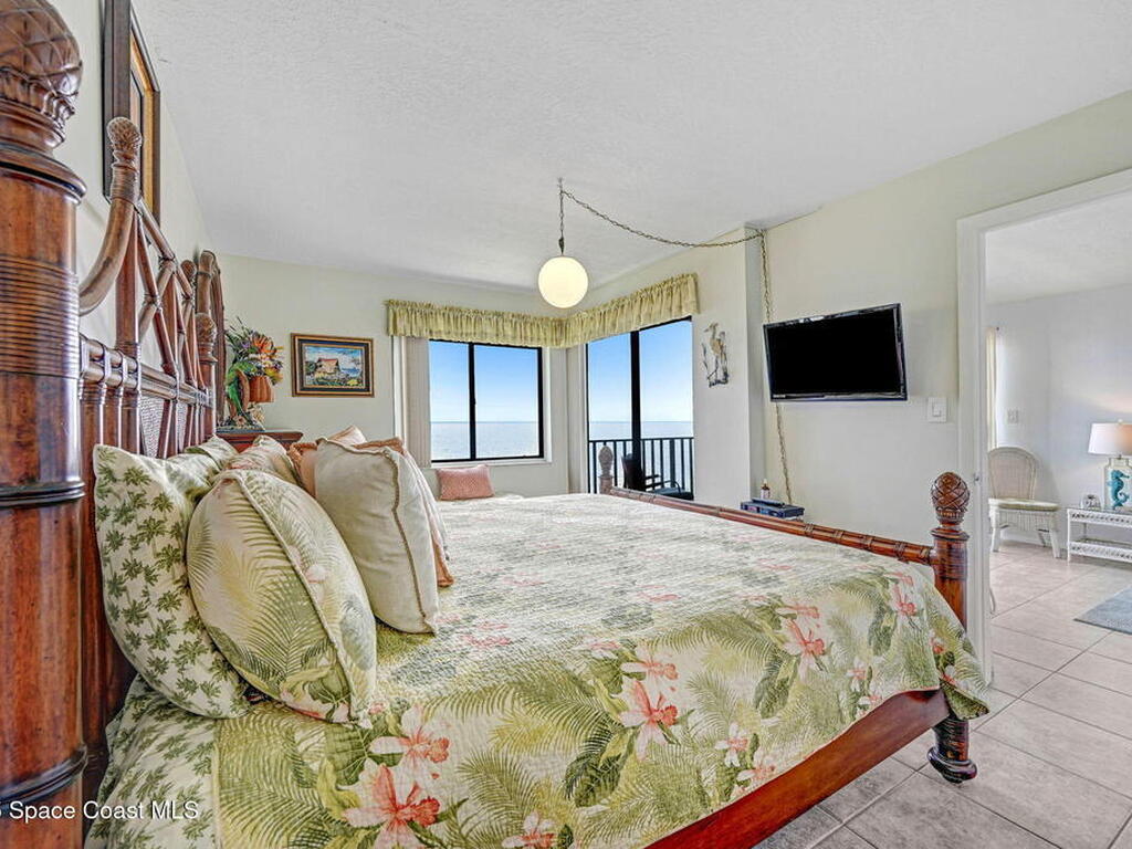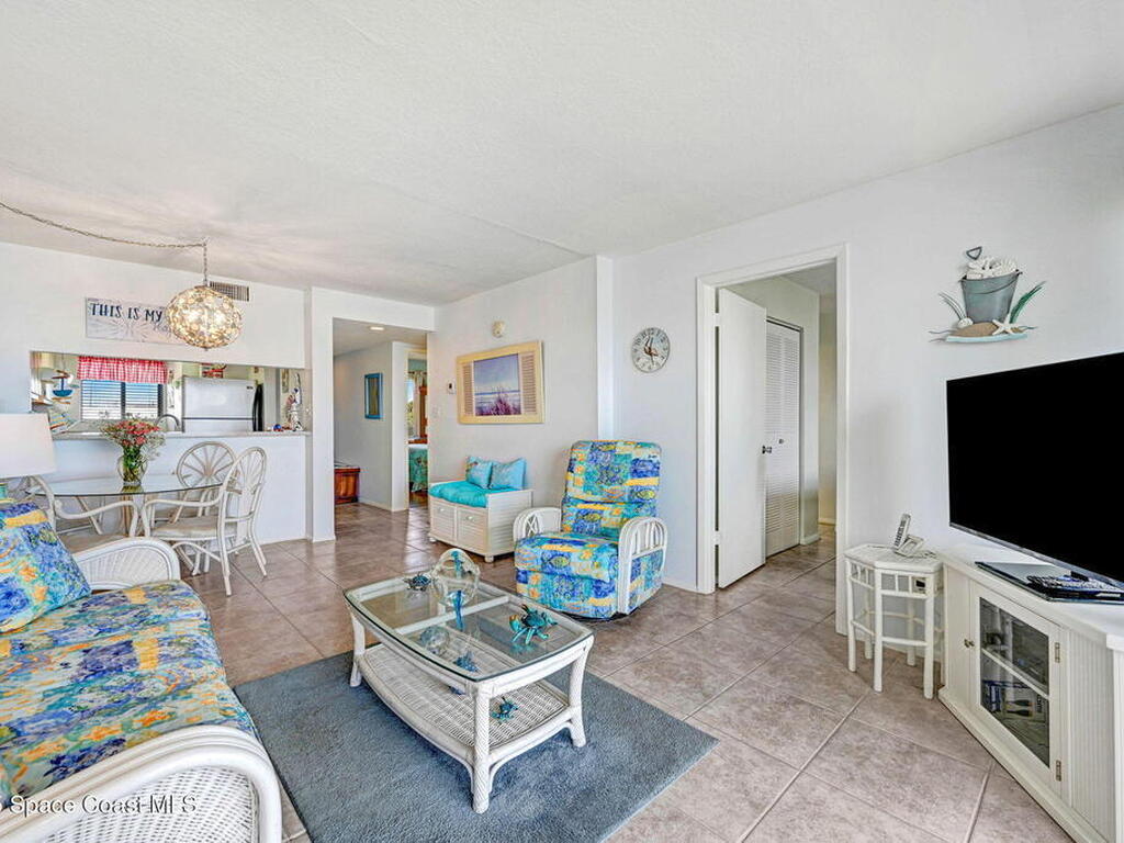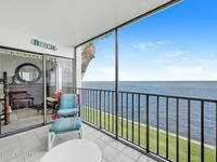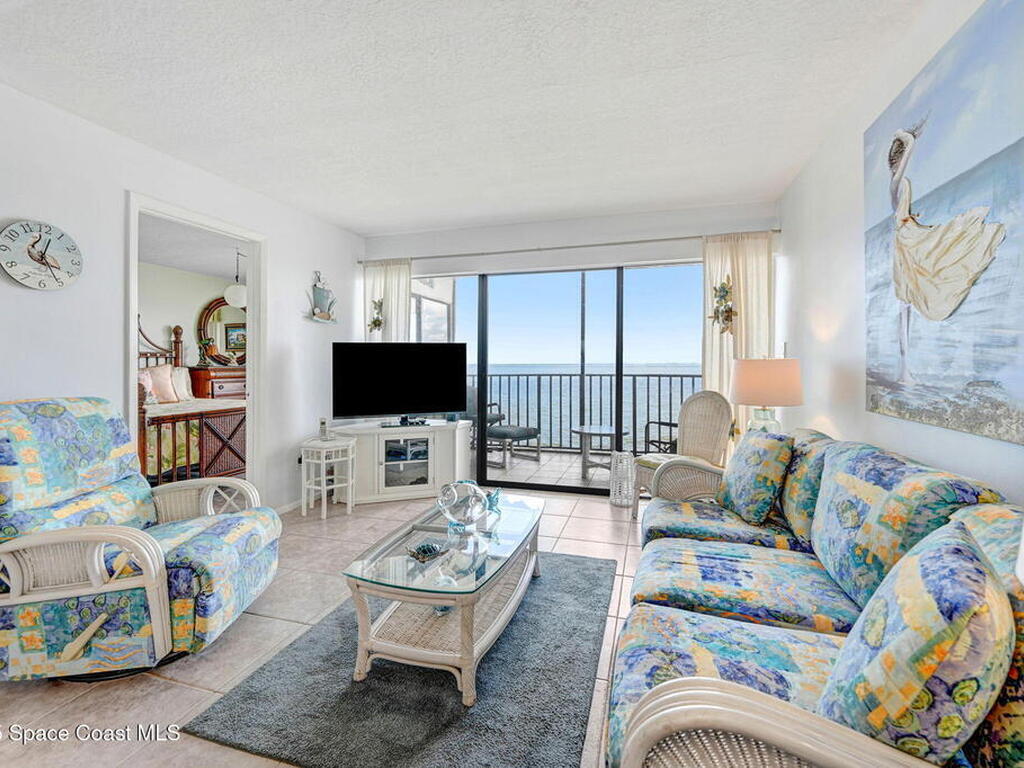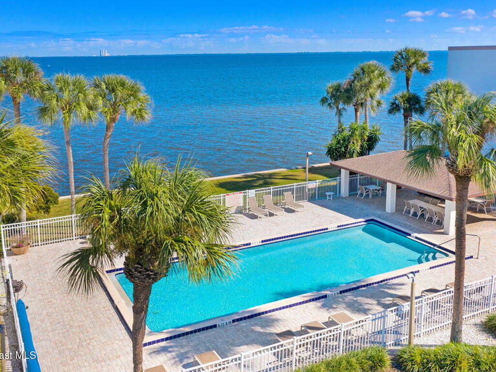 MILLION DOLLAR VIEWS FROM THIS SECOND FLOOR 2 BEDROOM 2 BATH FULLY FURNISHED CONDO WITH A SECURE GATED ENTRANCE. Take the elevator or the stairs to this charming condo decorated w/ a tropical theme.This clean unit has tile floors throughout including the screen lanai. This building is directly across from the Kennedy Space Center launch site so you have a ring side seat to all the launches & just a few steps away from the beautiful big heated community swimming pool. This quiet complex also has a club house with a full kitchen for parties & club activities including pot luck dinners & game nights, plus shuffleboard & tennis courts.Located directly across from our shopping mall, its an easy walk to the movies, restaurants & shopping. Condo fee includes water, sewer, trash, cable, internet, maintenance on the building & grounds, pool & insurance on the building. New Sea Wall in 2024 & fishing at your back door. Stay for the winter or for a lifetime if you want a care free lifestyle