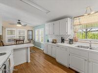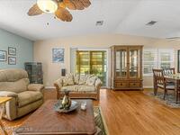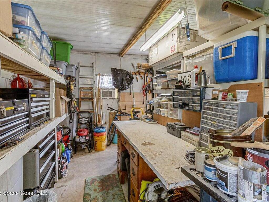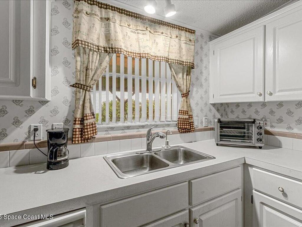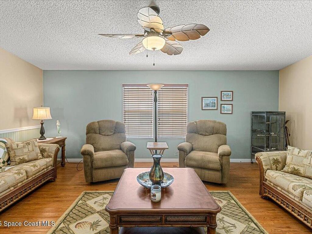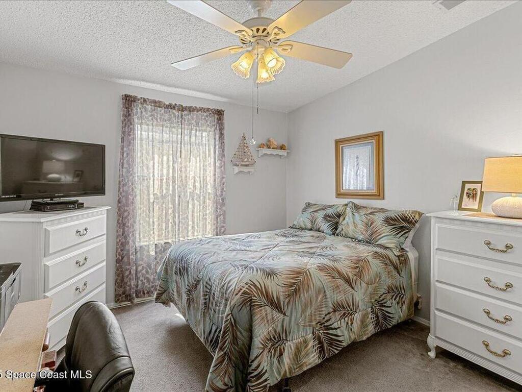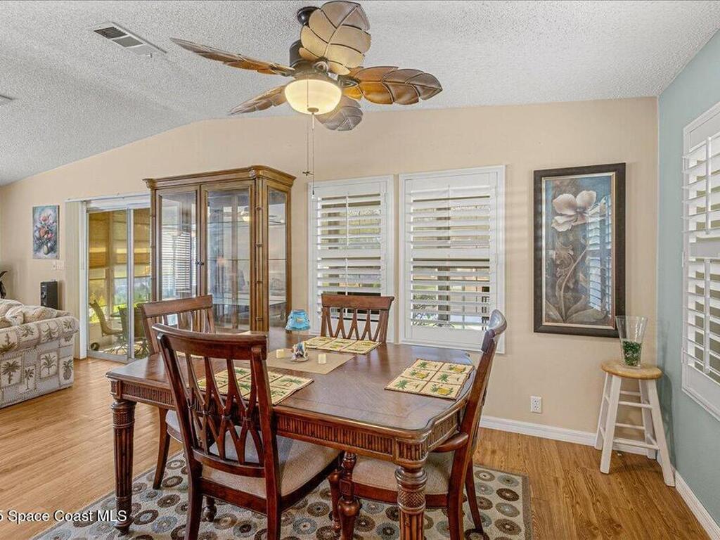 Own your land in this senior community where HOA fees are low and include cable, internet, lawncare and security.This charming 2/2 home has a front and back patio, an oversized.shed and workshop, . Plenty of parking for cars and toys, golfcart, kayak, etc.Community activities aplenty with swimming pool.pickle ball, billiards, plus a card room, just to name a few.Watch rocket launches from your yard.....check it out, you're going to love it!